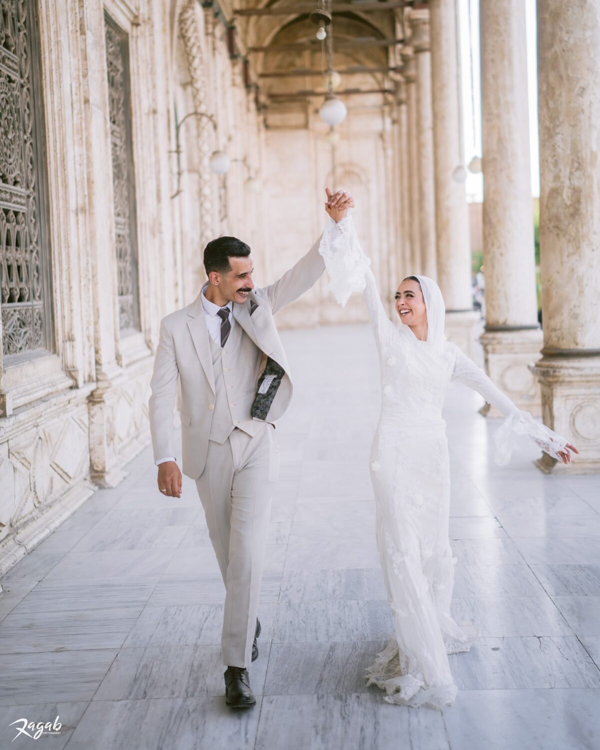 Ragab مش من النوع اللي يوقف العريس والعروسة في أوضاع جامدة أو لقطات تقليدية. هو بيسيبهم يعيشوا اللحظة، والعدسة بتكون مستعدة تخلّد كل تفصيلة في وقتها الصح. وده بيخلي الصور كلها طبيعية جدًا، فيها طاقة فرح ومشاعر حقيقية.