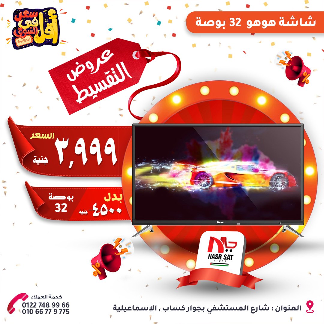 الأسعار في نصر سات متنوعة وبتناسب فئات مختلفة من العملاء. فيه عروض موسمية خاصة على التكييفات في الصيف، وتخفيضات على الأجهزة الصغيرة في المناسبات ورمضان. كمان بيكون فيه باقات تجهيز عرايس بأسعار مميزة بتشمل أكتر من جهاز أساسي.