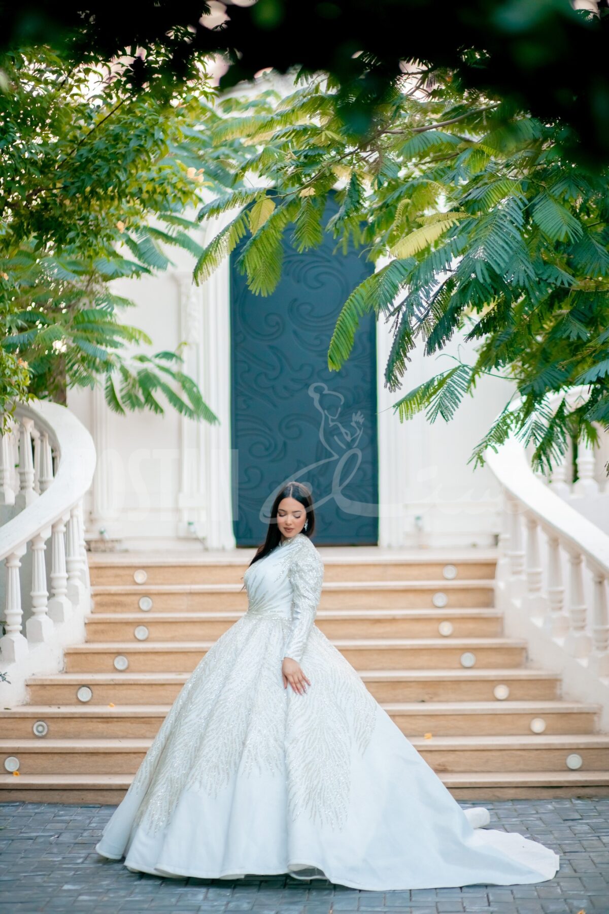 مش هتحتاجي تروحي محل تاني علشان تختاري الإكسسوارات، لأن Fostan Boutique بيكمل الإطلالة بتشكيلة طرَح وتيجان وأحزمة مكيفة مع كل موديل. الطرحة ممكن تكون طويلة لمساحة درامية في الصور، أو قصيرة ستايل بوهيمي لو بتحبي الحرية في الحركة. التيجان بسيطة ورقيقة للستايل الهادئ، أو مزينة بالكريستال للستايل الملكي.
