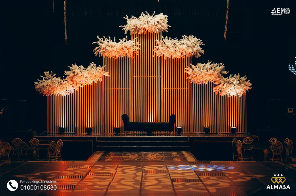 الديكور في قاعة الماسة إيتاي البارود بسيط وأنيق وبألوان محايدة بتديك حرية تضيف لمستك الخاصة سواء ورود طبيعية أو ستاندات إضاءة أو أكسسوارات تصميم الكوشة بيكون مكانها بارز قدام القاعة وبيسمح لك ترتب الخلفية حسب ثيم الحفل