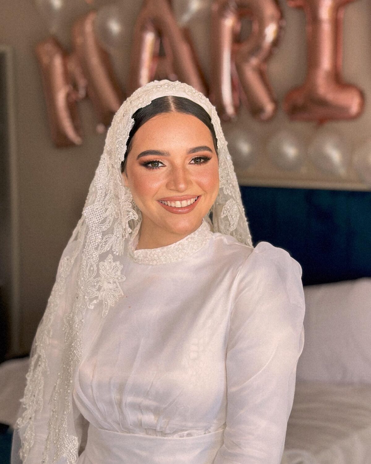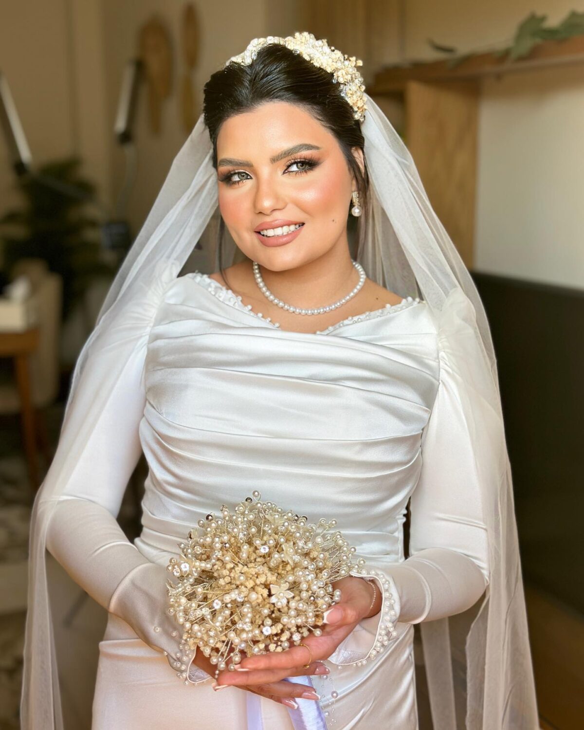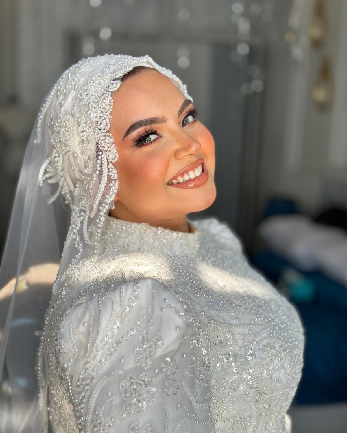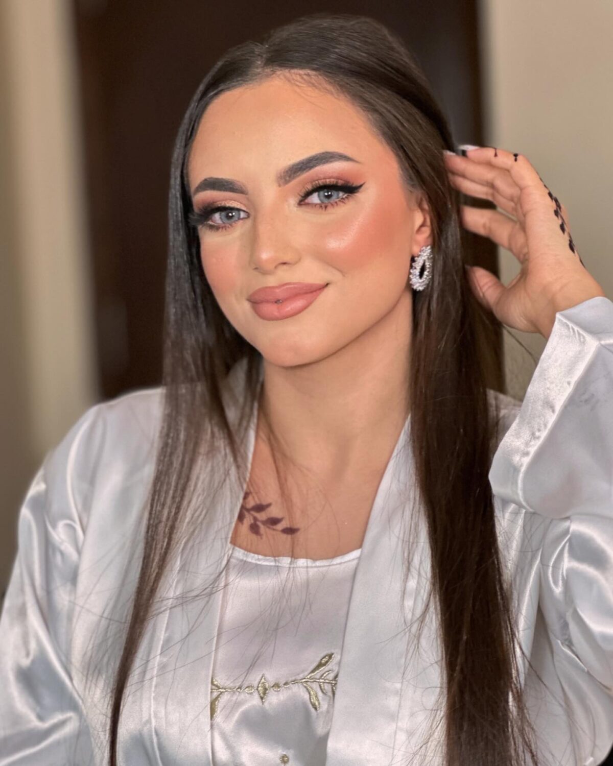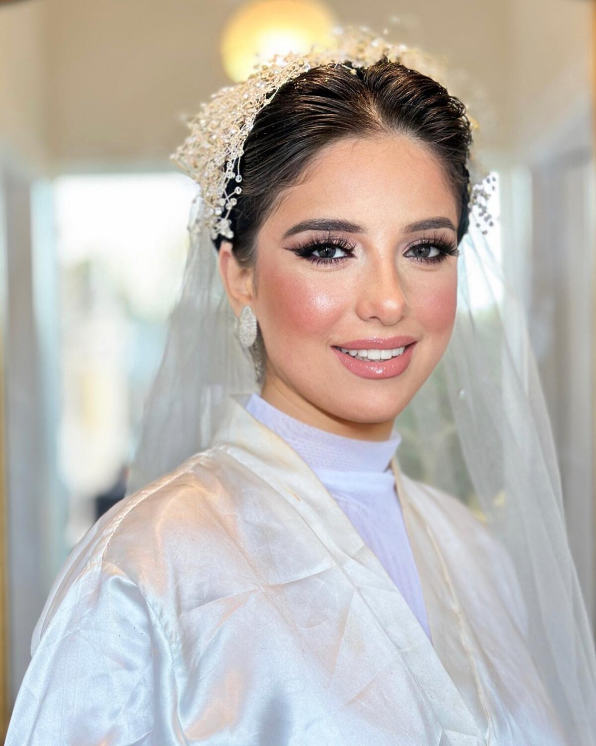 في مكياج العرايس، جهاد بتركز على النعومة والرقي. بتشتغل على الألوان اللي تليق مع لون بشرتك، ومع الفستان وتسريحة الشعر. هي مش من الناس اللي تحط طبقات كتير أو ألوان قوية، لكن بتشتغل على دمج الألوان وتناغمها بشكل يخلي النتيجة مريحة وشيك.