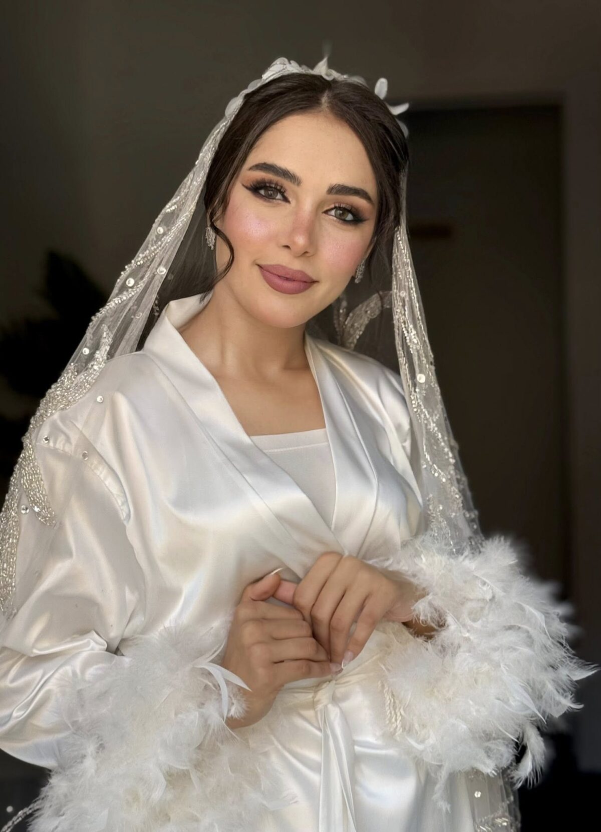 في شغلها مع العرايس، ميرا بتركز على التفاصيل الصغيرة اللي بتفرق كتير. بتختار الألوان اللي تناسب لون البشرة ودرجات الروج والآي شادو اللي يبرزوا جمال العيون من غير ما يكونوا تقيلين. النتيجة دايمًا بتكون لوك راقي وناعم يخلي العروسة مبسوطة وواثقة في أهم يوم في حياتها.