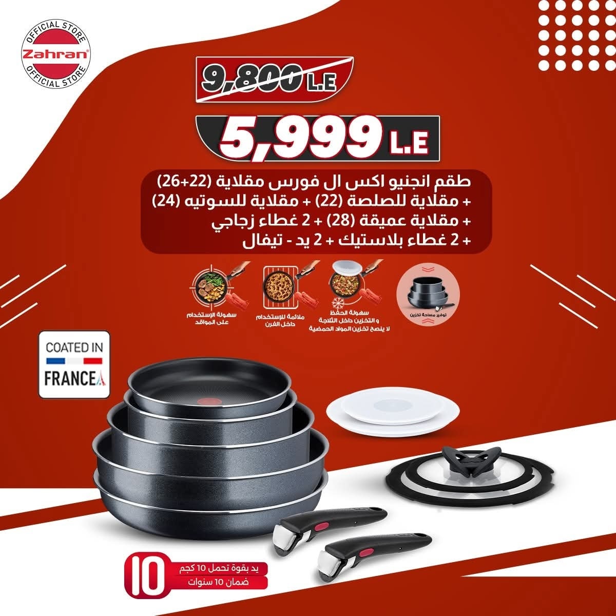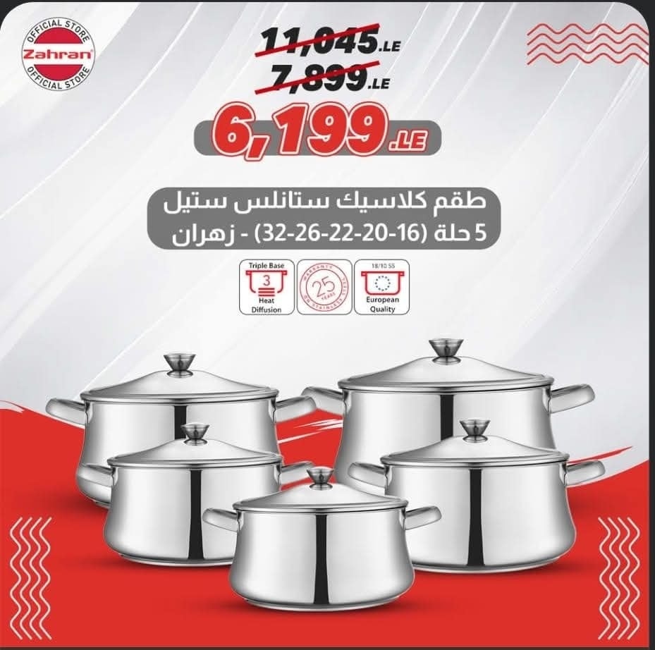 في قسم الطهي، Zahran Store بيقدّم تشكيلة واسعة من القدور والمقالي المصنوعة من الستانلس ستيل المقاوم للصدأ، والألومنيوم المطلي بطبقات غير لاصقة عالية الجودة. القطع دي بتوزع الحرارة بشكل متساوي وبتسهل عملية الطبخ والتنضيف، وبتناسب سواء عيلة صغيرة أو مطبخ بيت كبير. كمان في أطقم طهي كاملة متناسقة عشان تجهز مطبخك من أول مرة من غير ما تحتاج تكمل على مراحل.