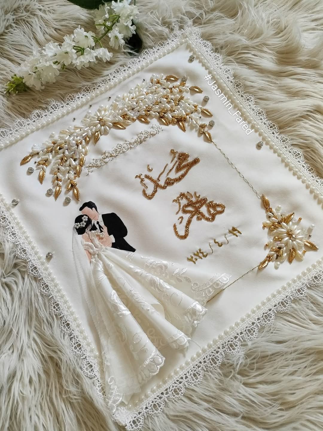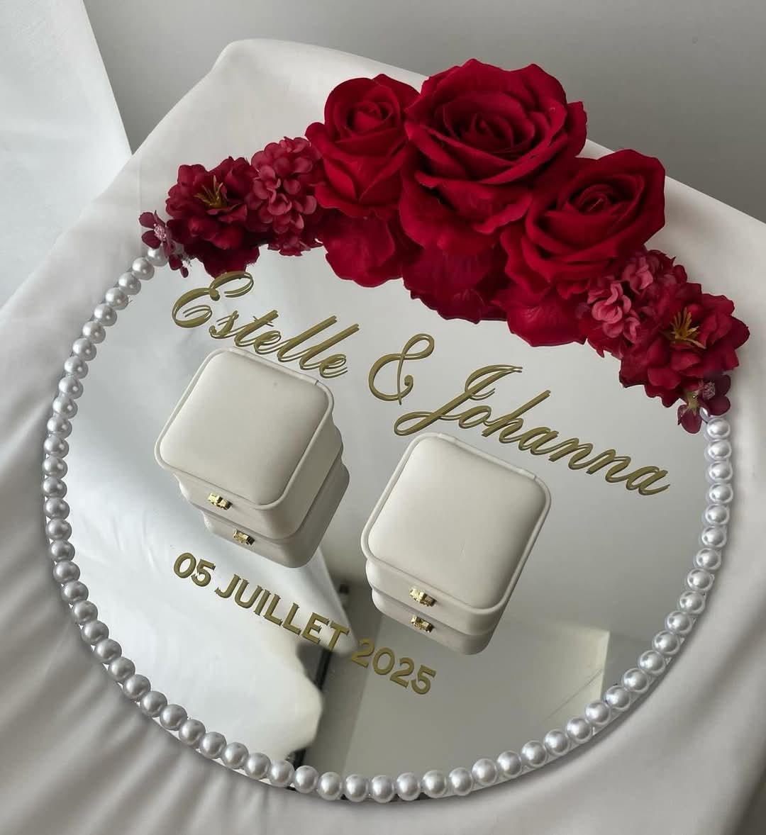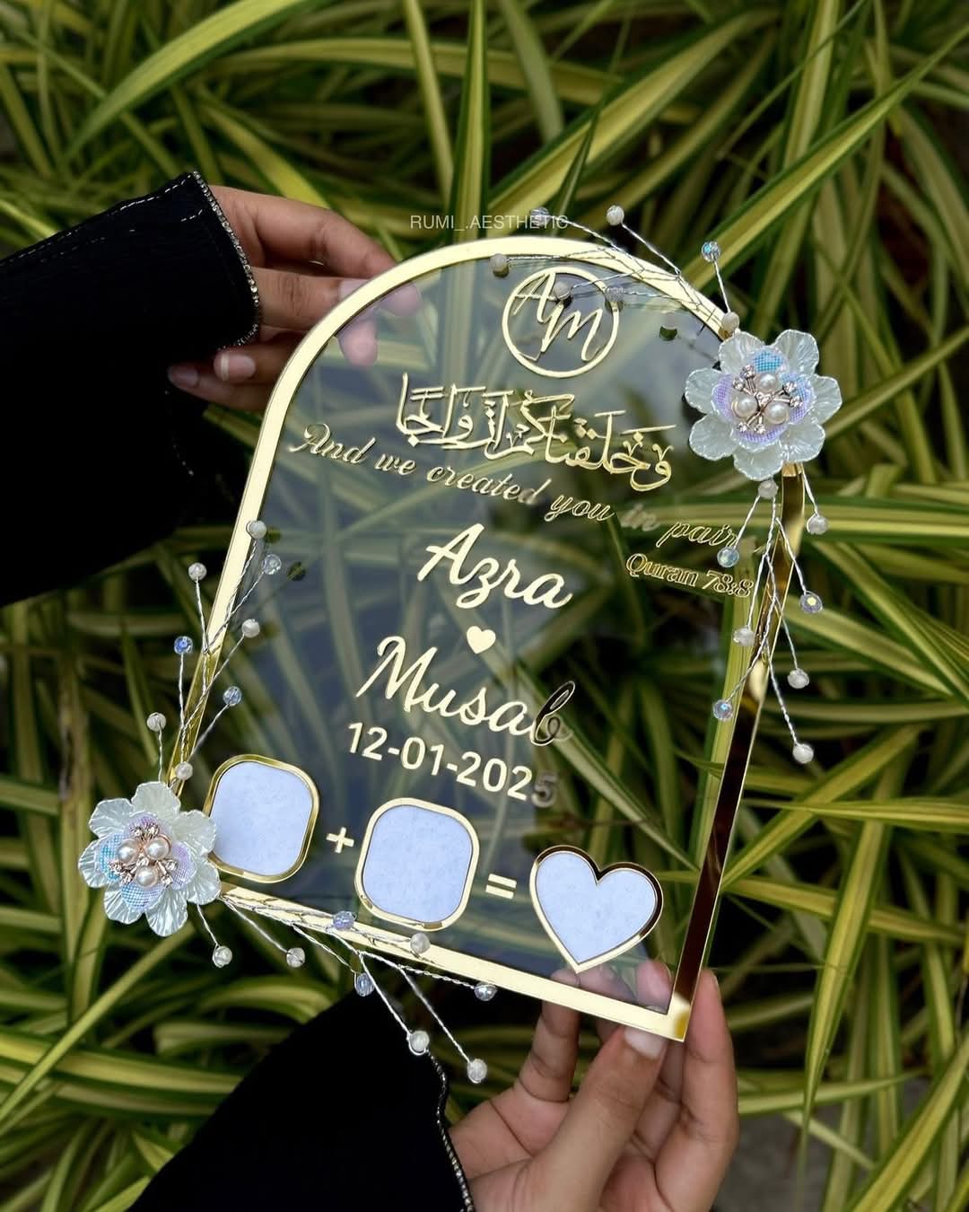 - مرايات كتب الكتاب محفورة بالأسماء والتاريخ بخط أنيق.