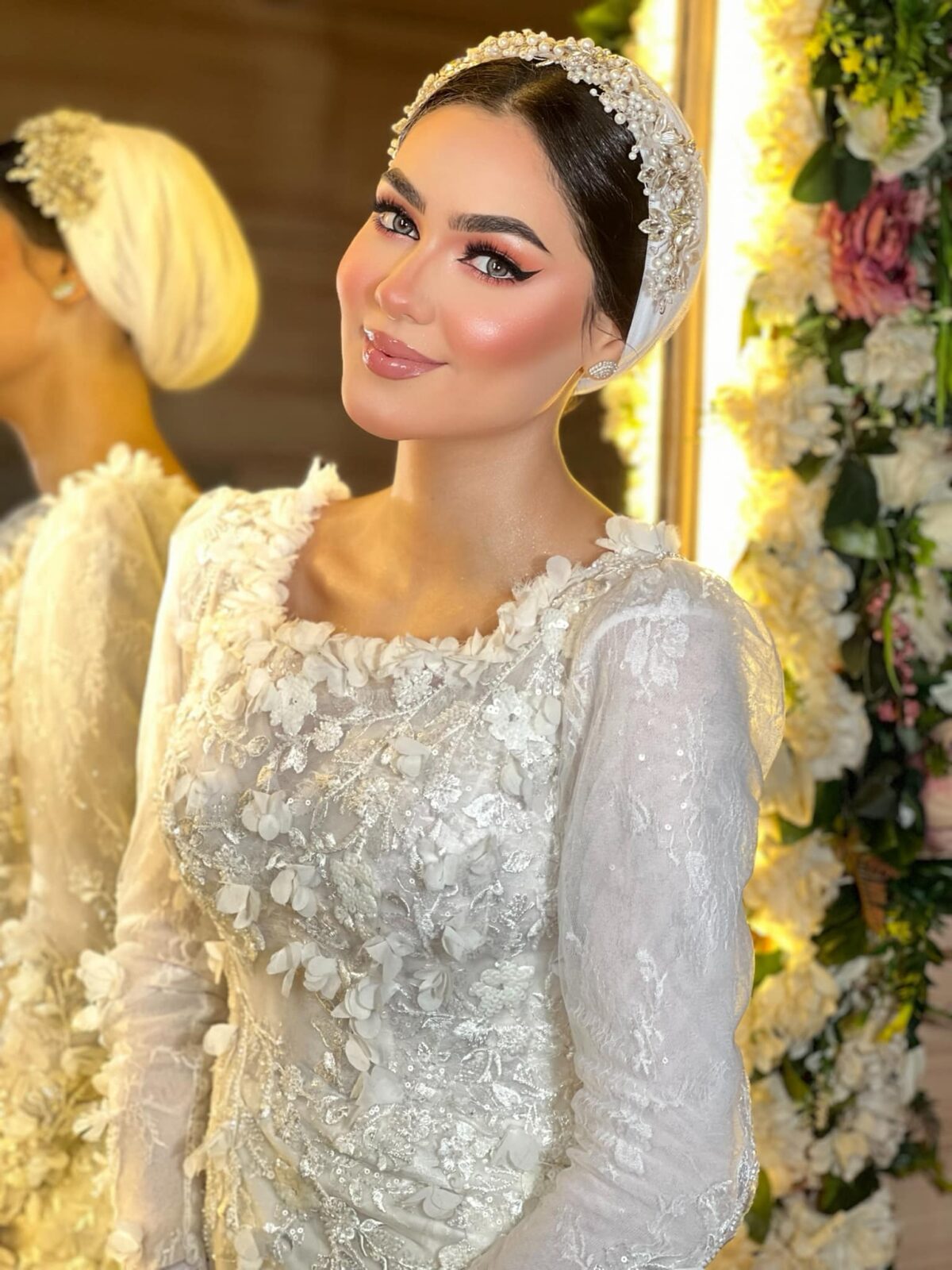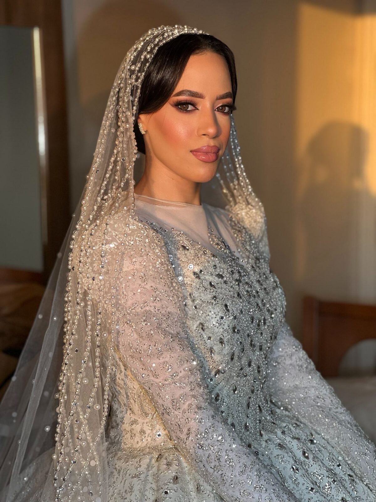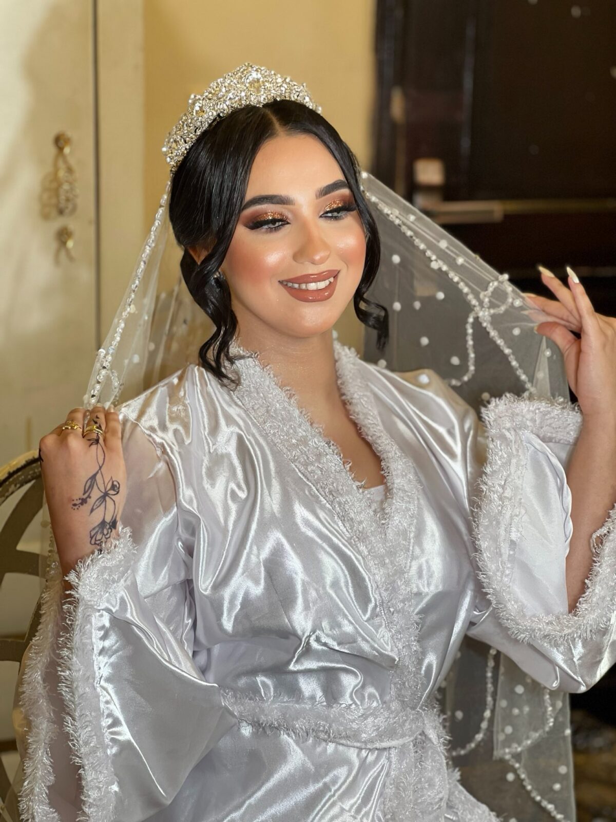 رغدة عادل كمان بتركز جدًا على ثبات الميكب. بتستخدم مثبتات عالية الجودة وتوزعها بطريقة تخلي اللوك ثابت وطبيعي مهما كان اليوم طويل أو الحركة كتير. وده بيدي للعروسة إحساس إنها هتفضل جميلة ومظبوطة من أول لحظة لحد آخر اليوم.