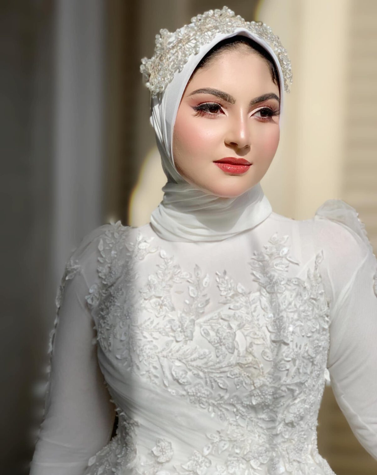 في الفاونديشن، آية شلبي بتحب اللوك الطبيعي اللي يبيّن جمال البشرة من غير ما يدي شكل طبقات. بتختار درجات قريبة من لون البشرة الحقيقي، وبتدمج الفاونديشن بطريقة ناعمة تخلي شكل الوش موحد ومنور سواء في الصور أو على الطبيعة. الستايل ده بيخلي العروسة شكلها بسيط وراقي.