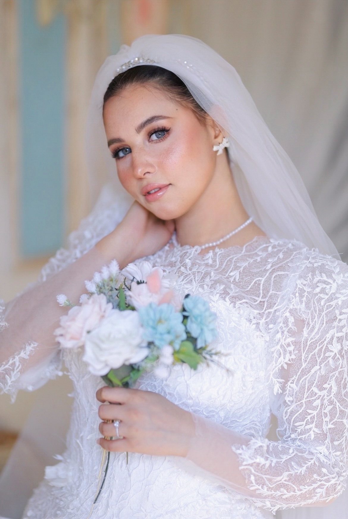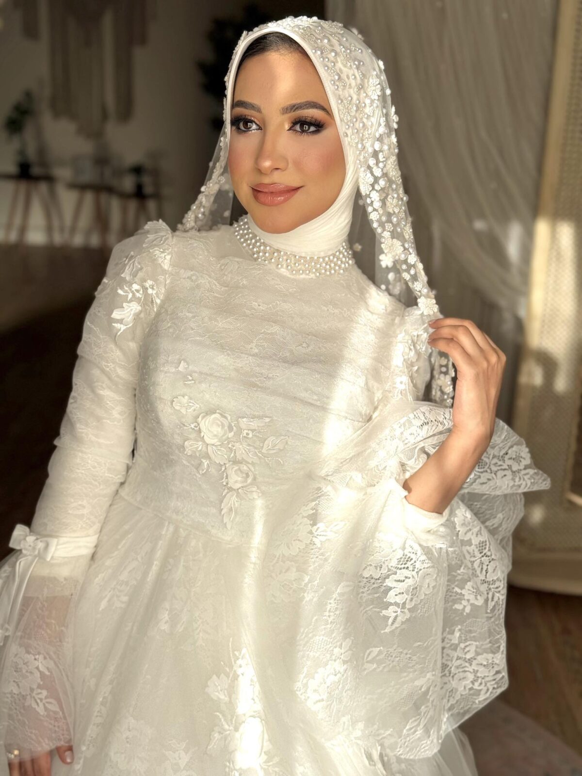 ابتهاج خالد كمان بتركّز على ثبات الميكب بشكل كبير. بتستخدم مثبتات قوية وتوزعها صح عشان اللوك يفضل ثابت وطبيعي طول اليوم مهما كان الجو أو الحركة كتير. وده بيدّي للعروسة إحساس إنها هتفضل جميلة ومتألقة لحد آخر لحظة.