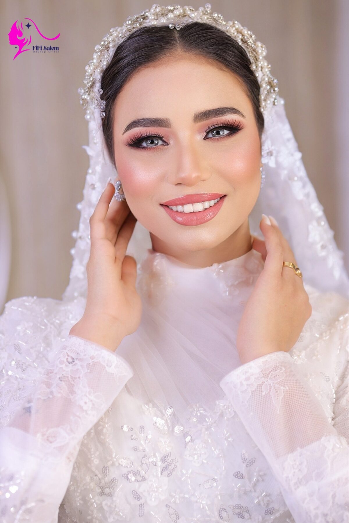 فيفي كمان بتركز على ثبات الميكب. بتستخدم مثبتات عالية الجودة وبتوزعها صح عشان اللوك يفضل ثابت طول اليوم حتى مع الحركة أو الحرارة. وده بيدي للعروسة إحساس إنها هتفضل جميلة ومظبوطة من أول لحظة لحد آخر اليوم.
