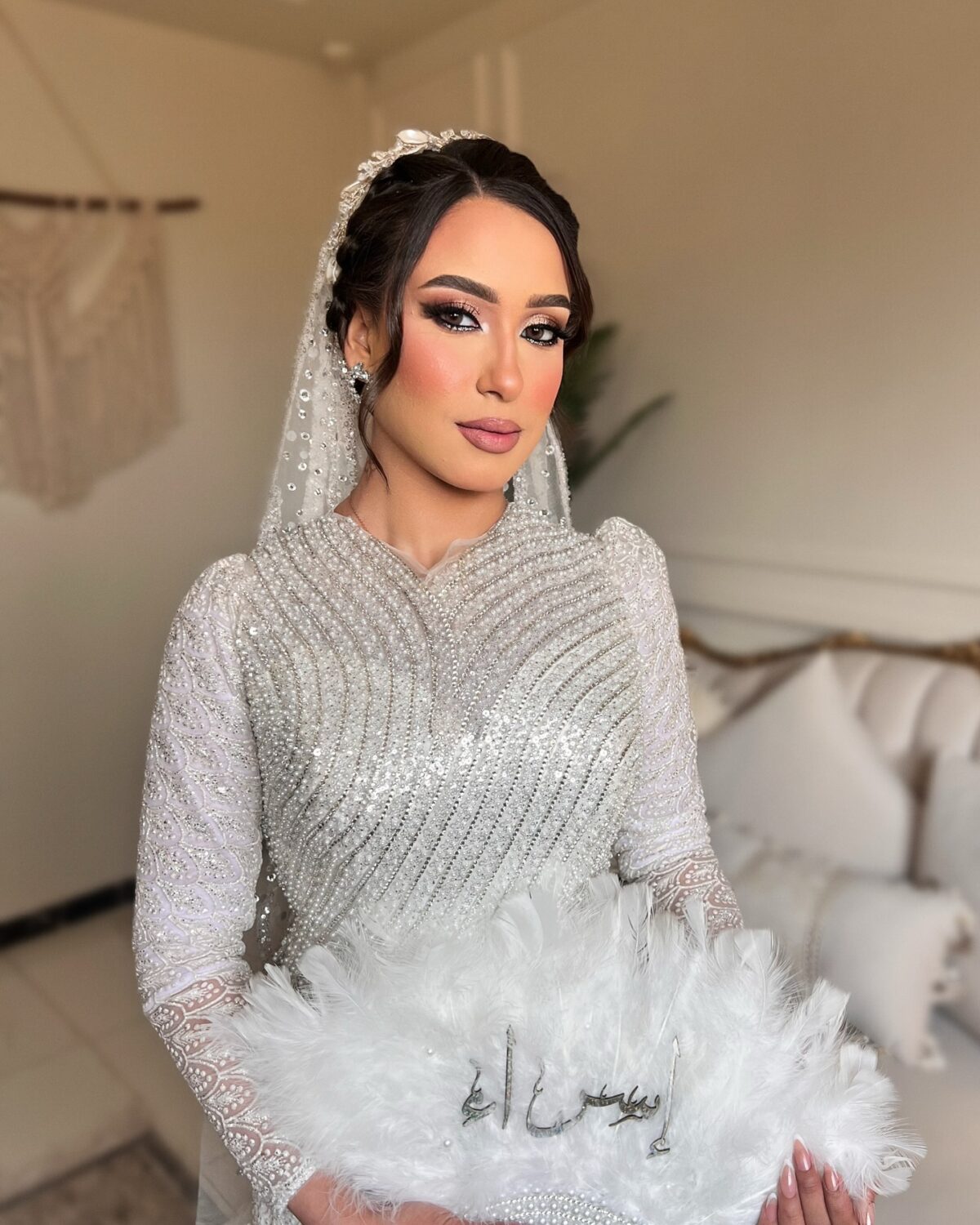 حنان منصور كمان بتركز جدًا على ثبات الميكب. بتستخدم مثبتات عالية الجودة وبتوزعها بطريقة تخلي اللوك ثابت وطبيعي مهما كان اليوم طويل أو الحركة كتير. وده بيدي للعروسة راحة إنها هتفضل جميلة ومظبوطة لحد آخر لحظة.