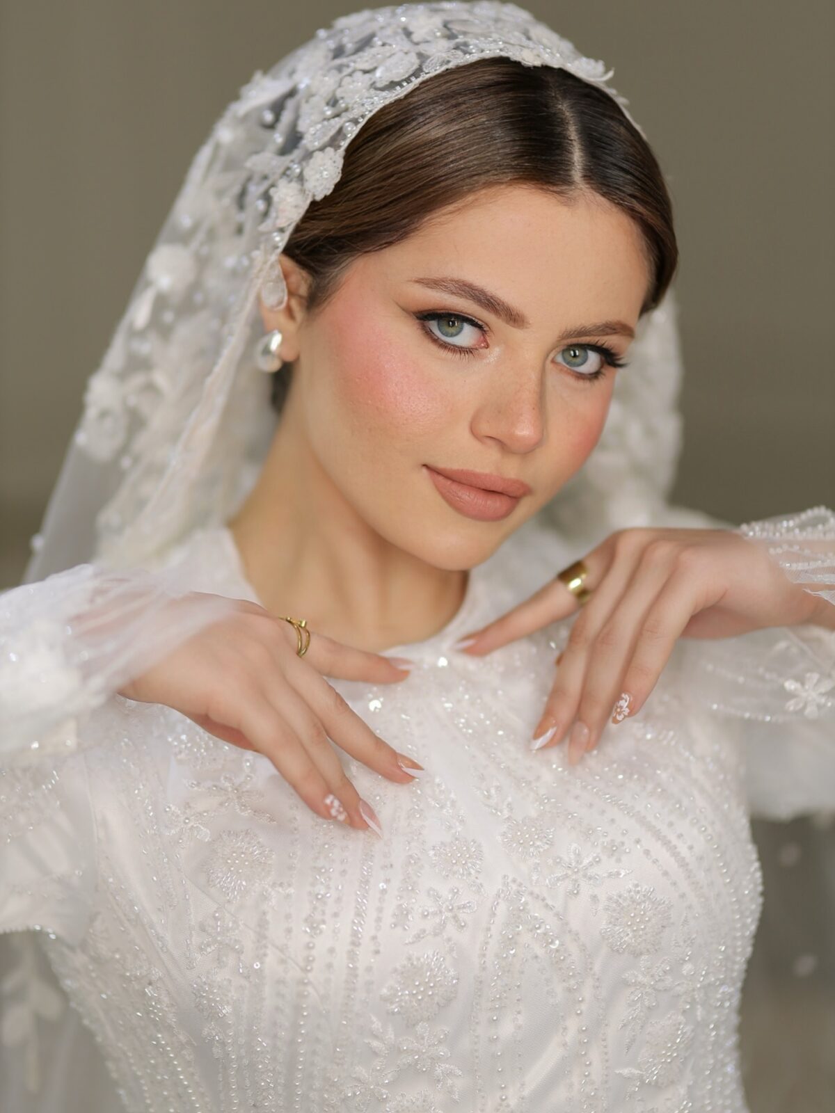 في الفاونديشن، حنان منصور بتحب اللوك الطبيعي جدًا. بتختار درجات قريبة من لون البشرة الحقيقي وبتدمجها بطريقة ناعمة تخلي شكل الوش خفيف ومريح من غير طبقات أو تكتل. الأسلوب ده بيخلّي العروسة شكلها صافي سواء في الحقيقة أو تحت إضاءة الكاميرا.