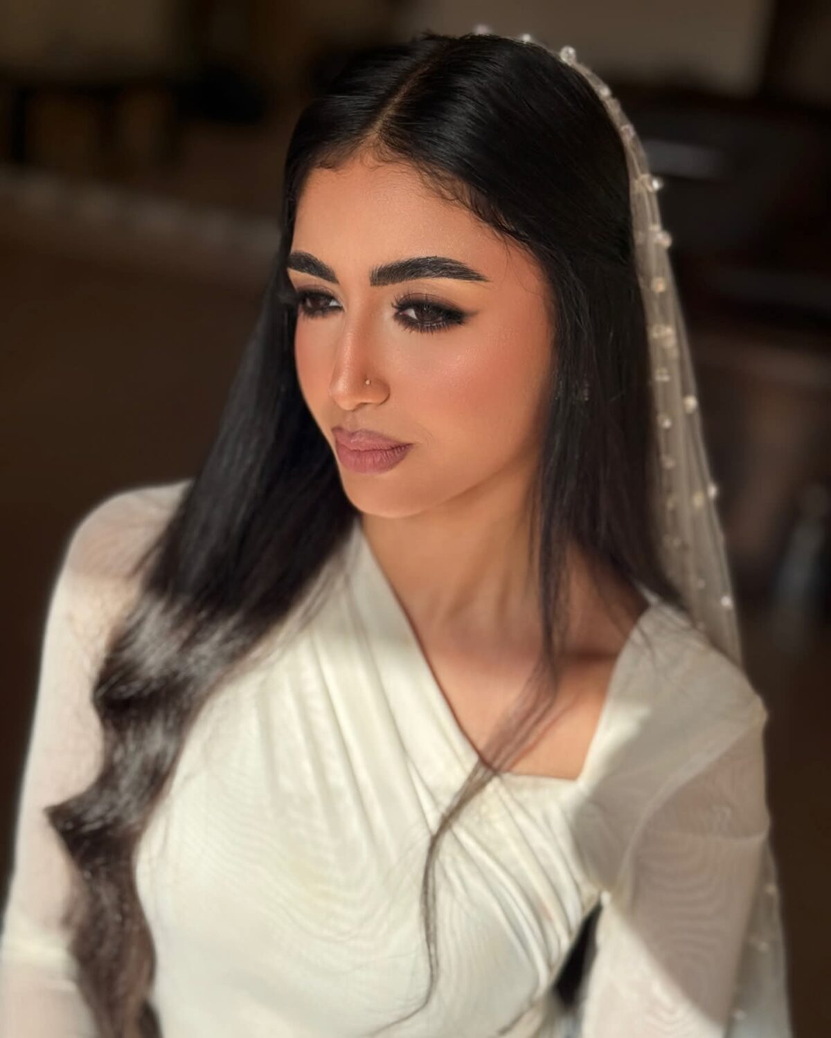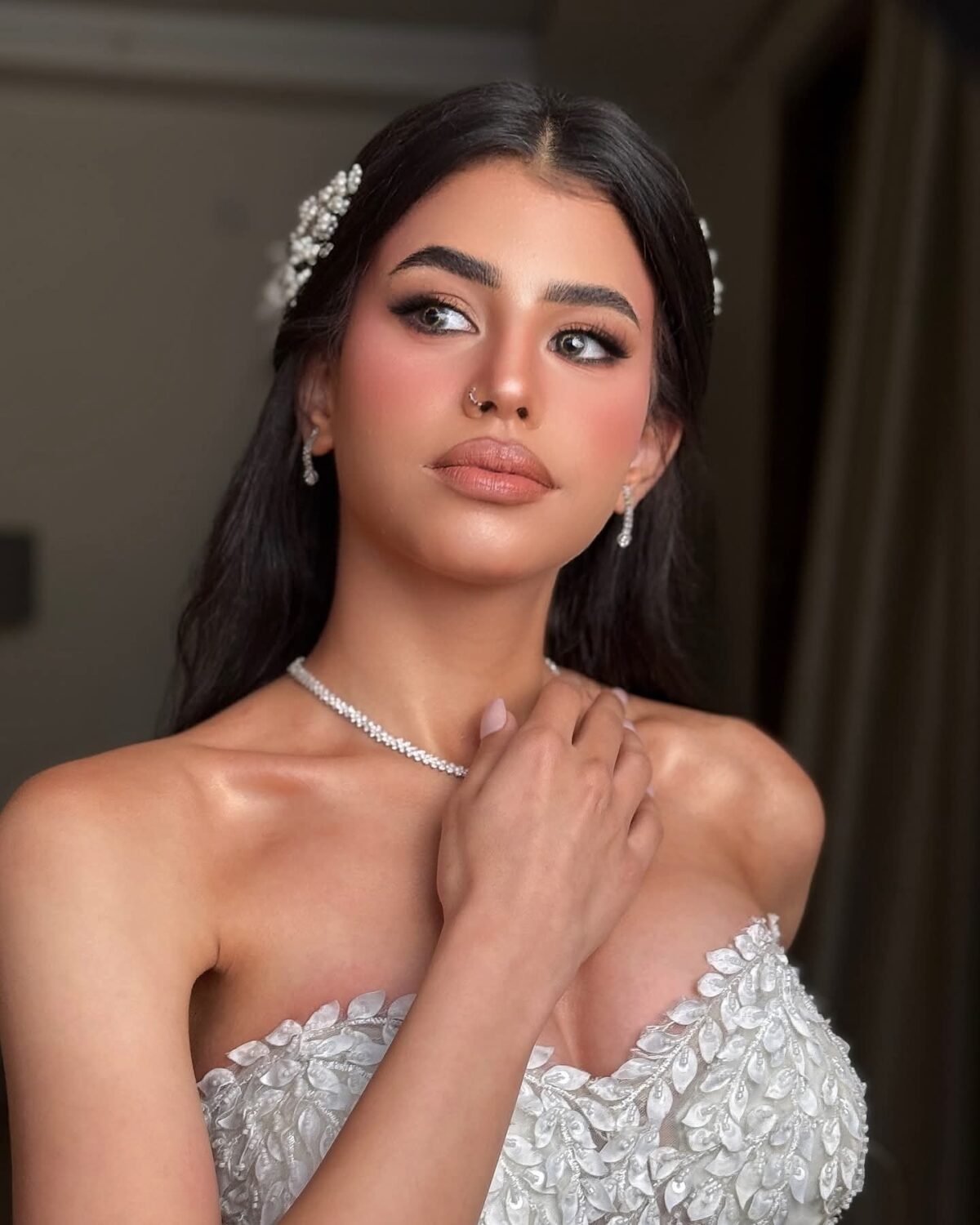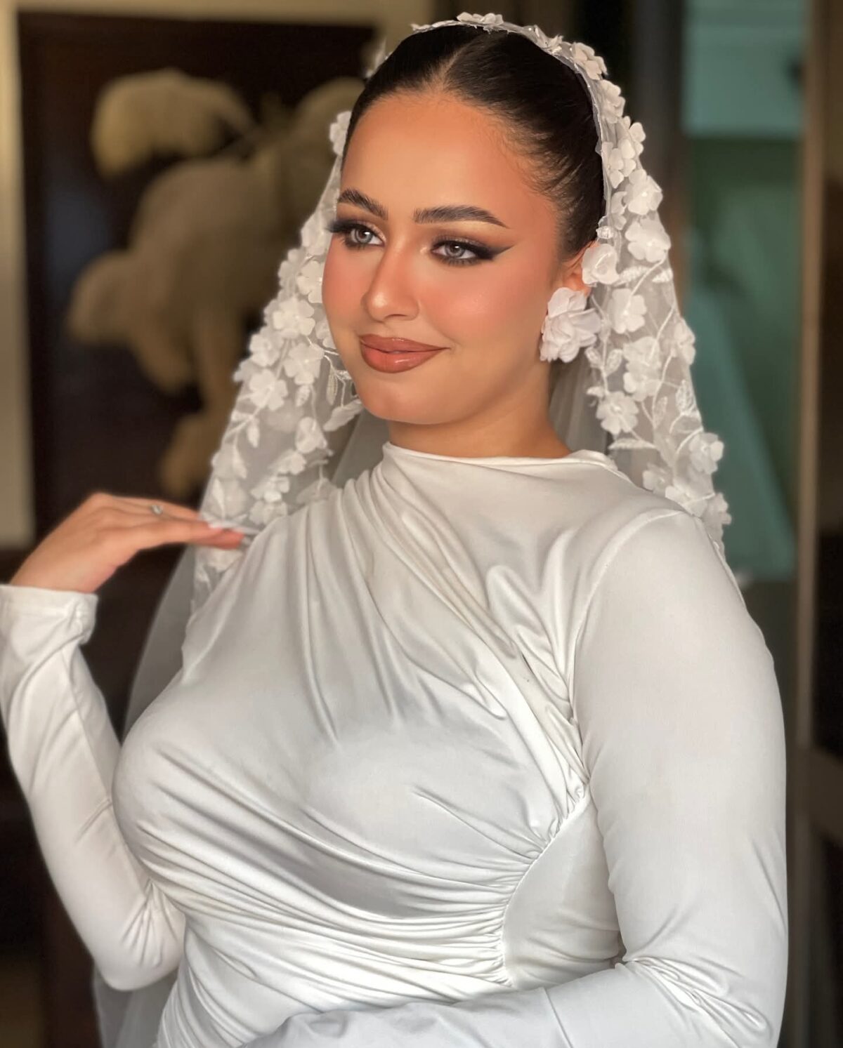 لو كنتي عروسة، أسماء بتقعد معاكي من الأول تسمعك كويس وتفهم إنتي متخيلة شكلك يطلع عامل إزاي. بتشتغل معاكي على اختيار الألوان المناسبة لبشرتك، وبتراعي إن المكياج يليق مع الفستان والتسريحة، ويكون شكله طبيعي في الصور وعلى الحقيقة. الهدف إن المكياج يفضل ثابت ويريّحك طول اليوم من غير ما تحتاجي تعملي تعديل أو تحسين.