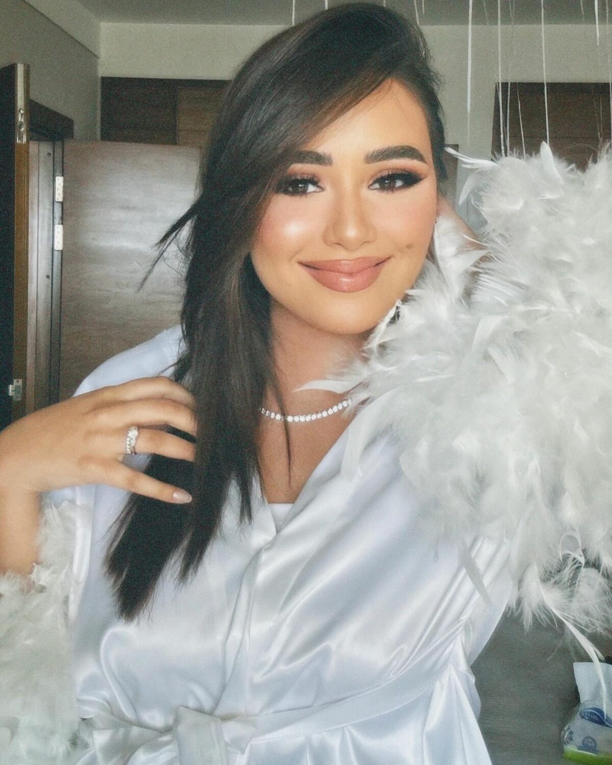 لو كنتي عروسة، آية بتبدأ معاكي من بدري. بتقعد معاكي وتفهم إنتي متخيلة إطلالتك عاملة إزاي، وبتشتغل على الألوان اللي تمشي مع لون بشرتك، الفستان، وتسريحة الشعر. بتراعي كمان الإضاءة وطبيعة اليوم، علشان المكياج يثبت ويبان مظبوط في الصور وطول اليوم.