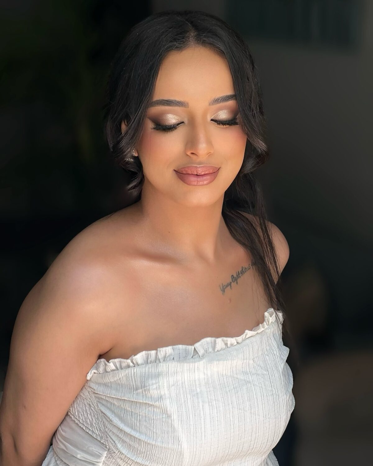 أما ميكب العيون، فداليا بتتقن النقطة دي جدًا. بتعرف تختار درجات الشادو المناسبة لكل عين سواء اللوك الترابي الهادي أو دمج بسيط يدي عمق للعين. بتركّز إن الرسمة تفتح العين وتظهر جمالها من غير ما تكون تقيلة. الرموش اللي بتستخدمها غالبًا بتكون خفيفة أو فردية عشان تدّي شكل طبيعي ومتكامل مع اللوك العام.