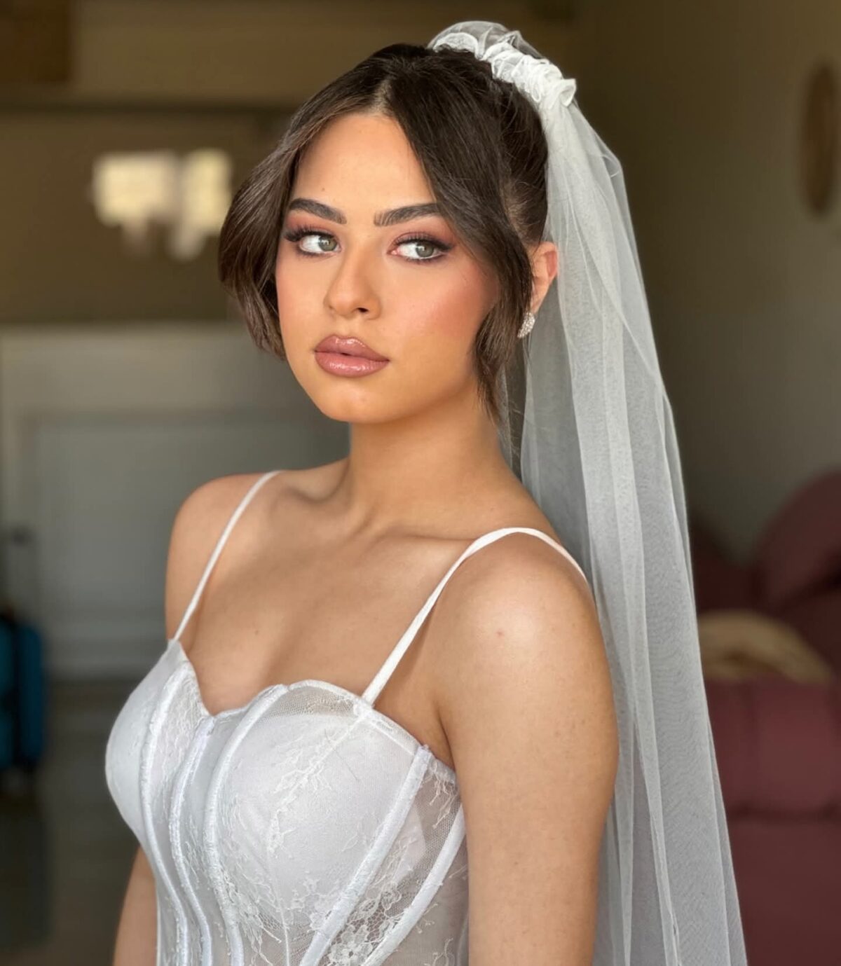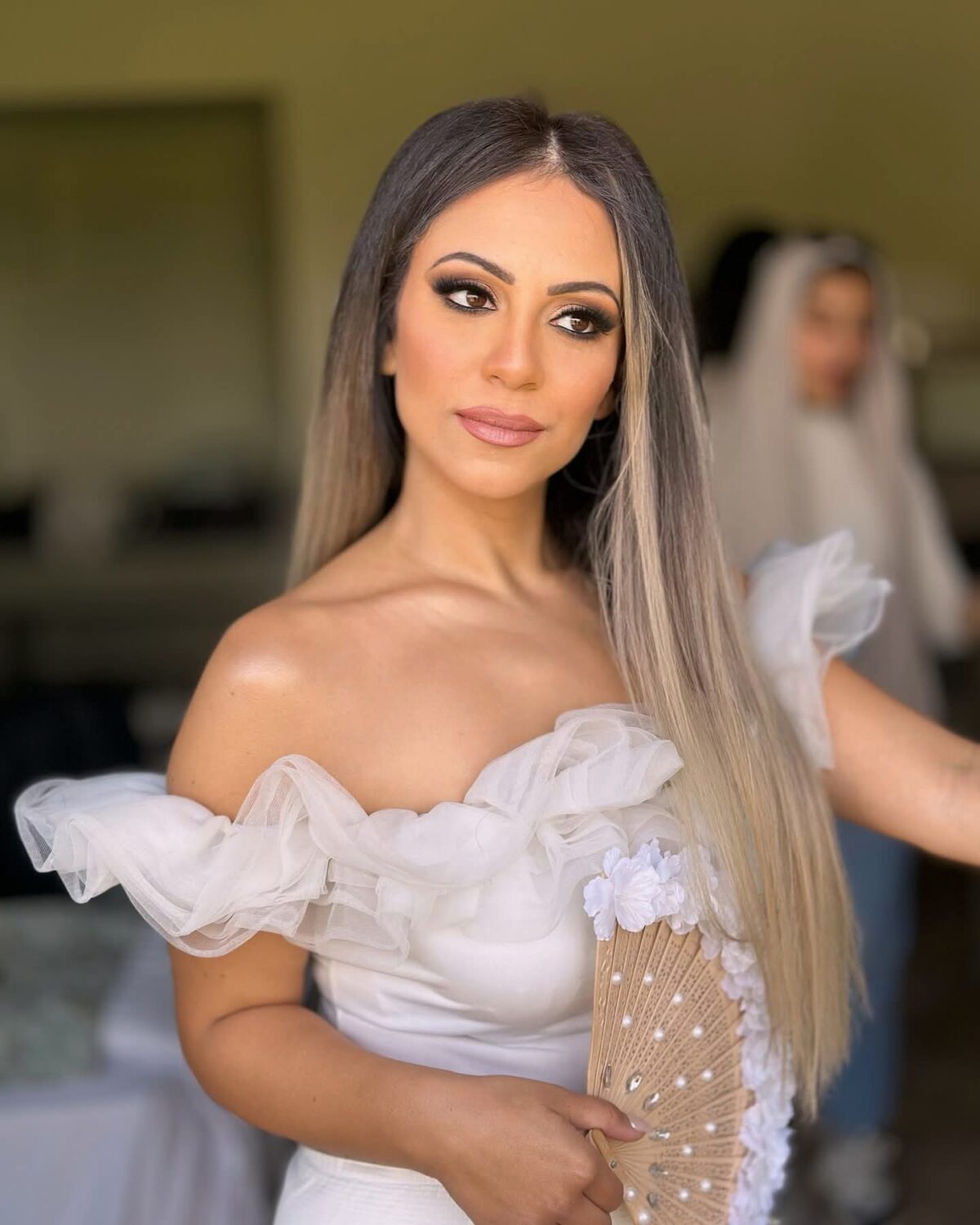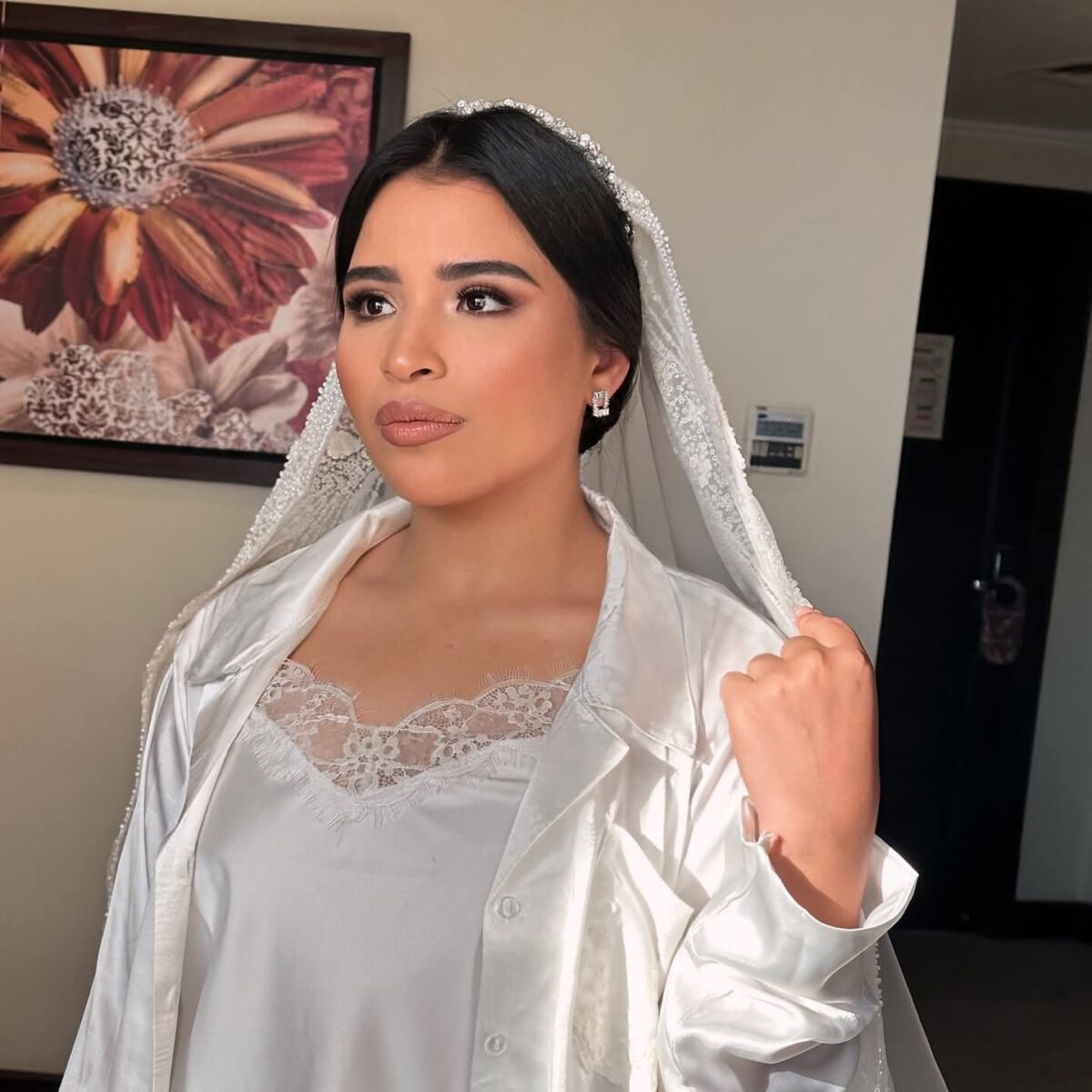 في مكياج العرايس، دينا بتركز على التفاصيل. بتبدأ معاكي من أول خطوة علشان تختار معاكي الألوان المناسبة لبشرتك، وشكل الفستان، وتسريحة الشعر. بتراعي كمان إن المكياج يكون ثابت، مريح، ومناسب للتصوير والإضاءة، علشان شكلك يفضل حلو وطبيعي طول اليوم.