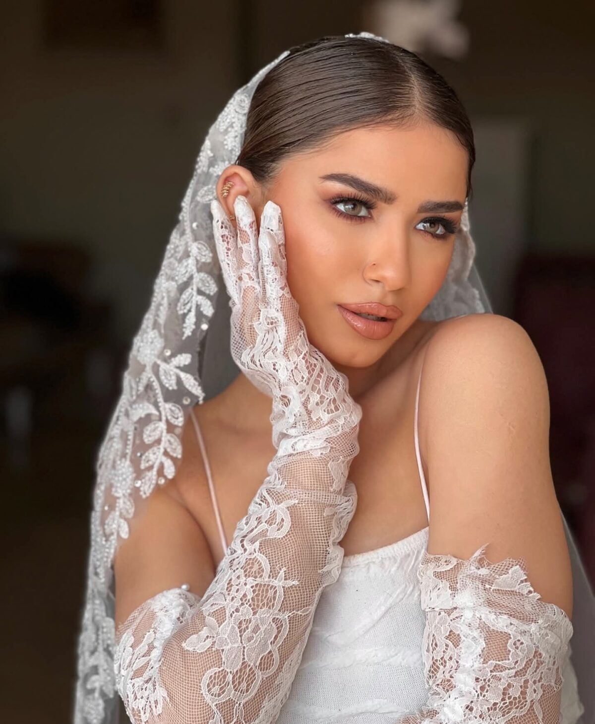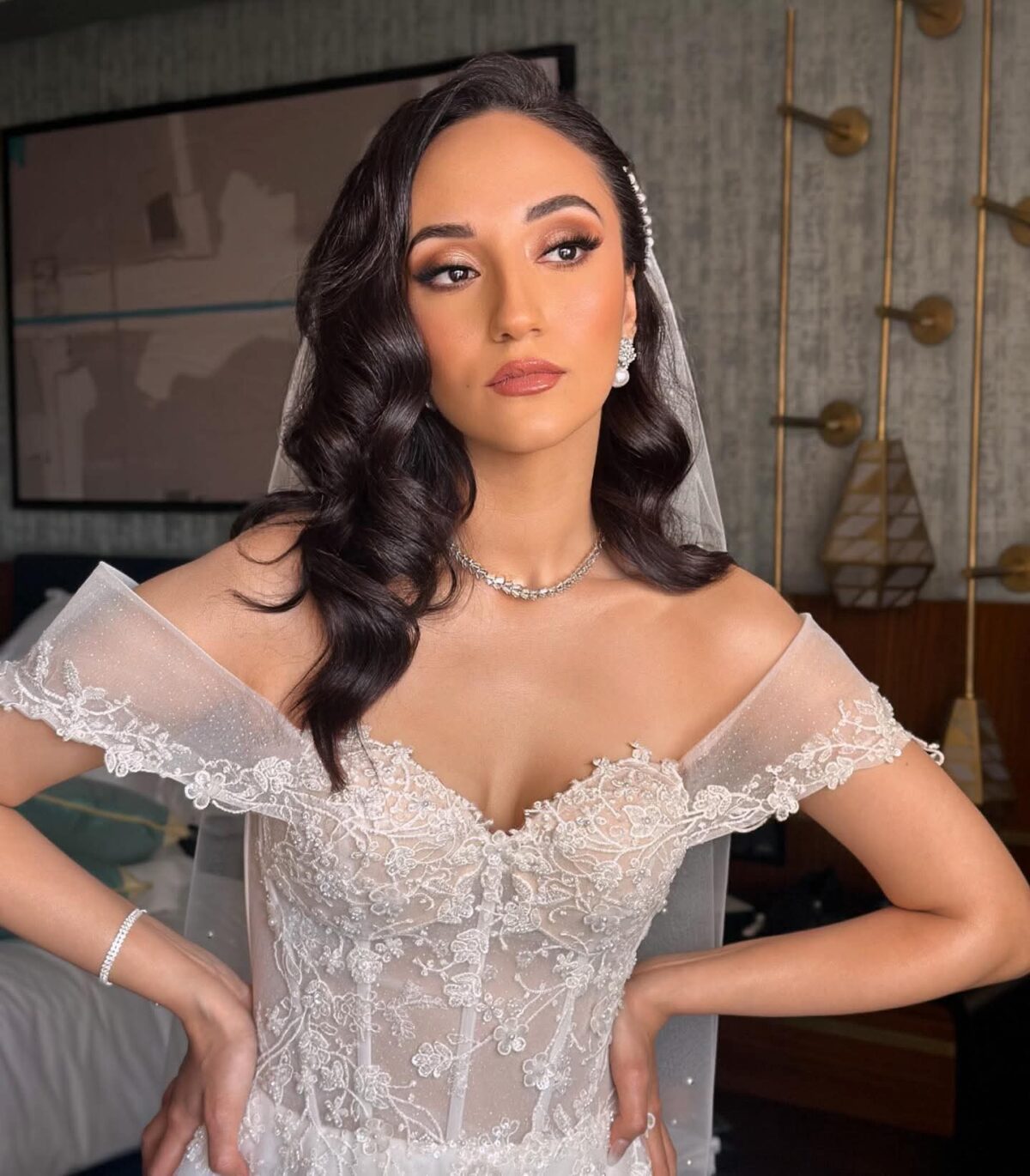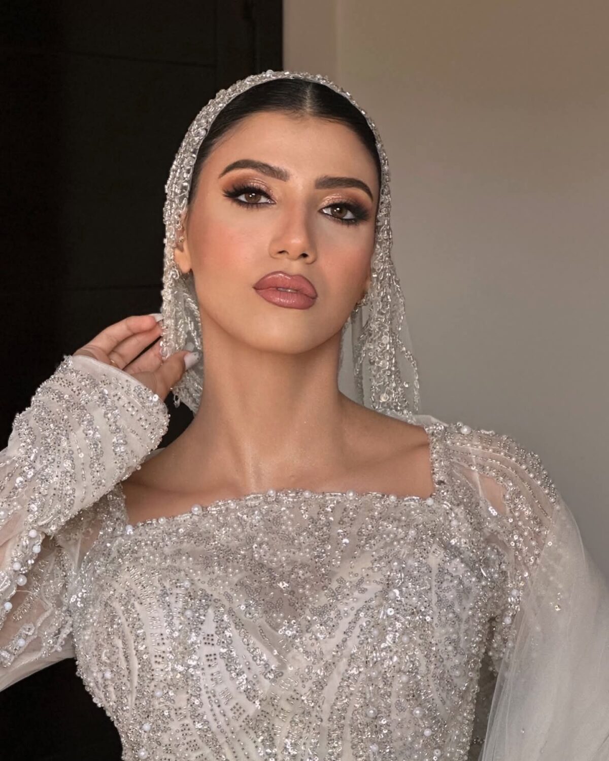 في مكياج العرايس، دينا بتركز على التفاصيل. بتبدأ معاكي من أول خطوة علشان تختار معاكي الألوان المناسبة لبشرتك، وشكل الفستان، وتسريحة الشعر. بتراعي كمان إن المكياج يكون ثابت، مريح، ومناسب للتصوير والإضاءة، علشان شكلك يفضل حلو وطبيعي طول اليوم.