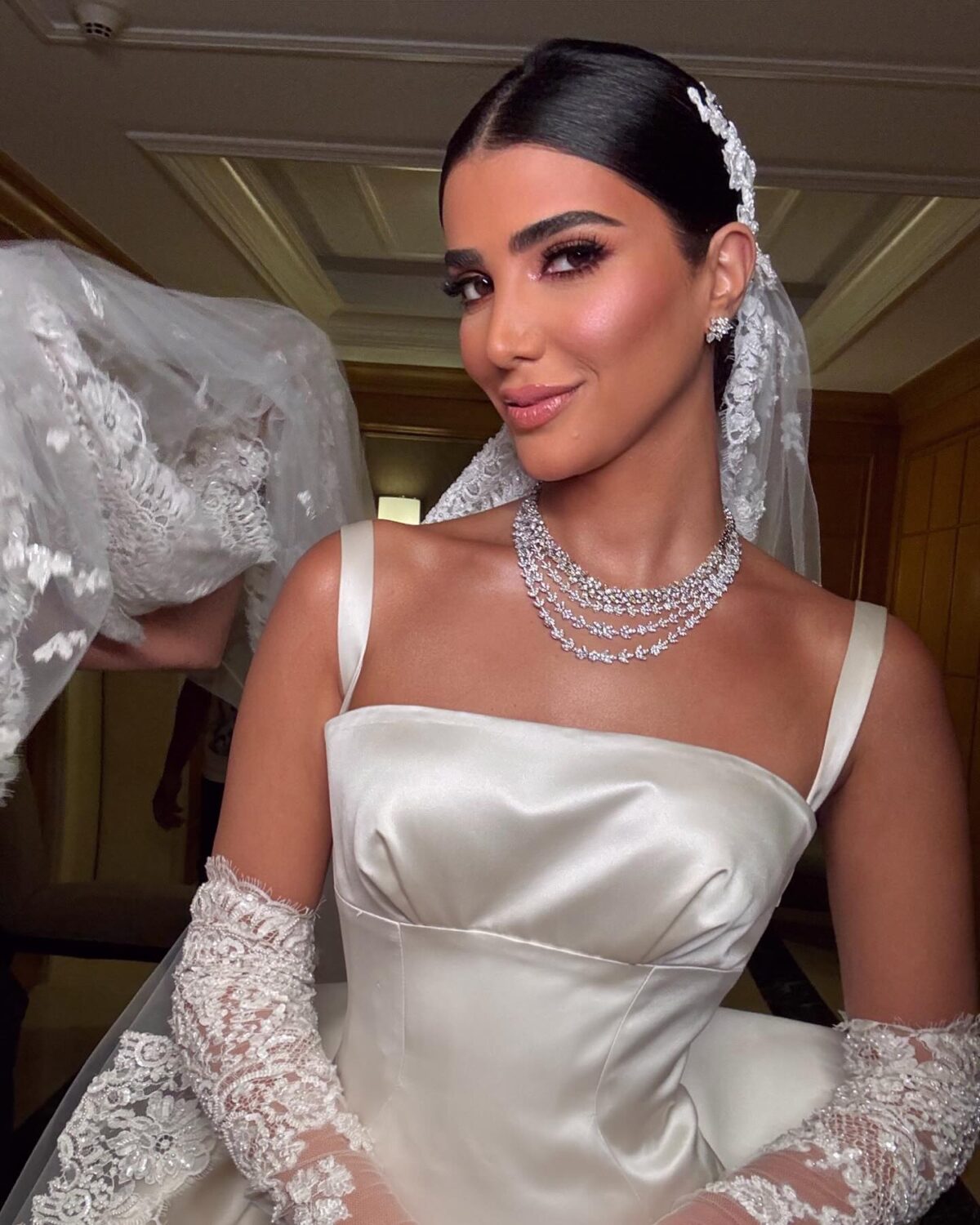 دينا راغب كمان بتركّز جدًا على ثبات الميكب. بتستخدم مثبتات قوية وتوزعها بطريقة تضمن إن اللوك يفضل ثابت وطبيعي طول اليوم مهما كانت الحركة أو الحرارة. وده بيدي للعروسة إحساس إنها هتفضل جميلة ومظبوطة من أول لحظة لآخر اليوم.