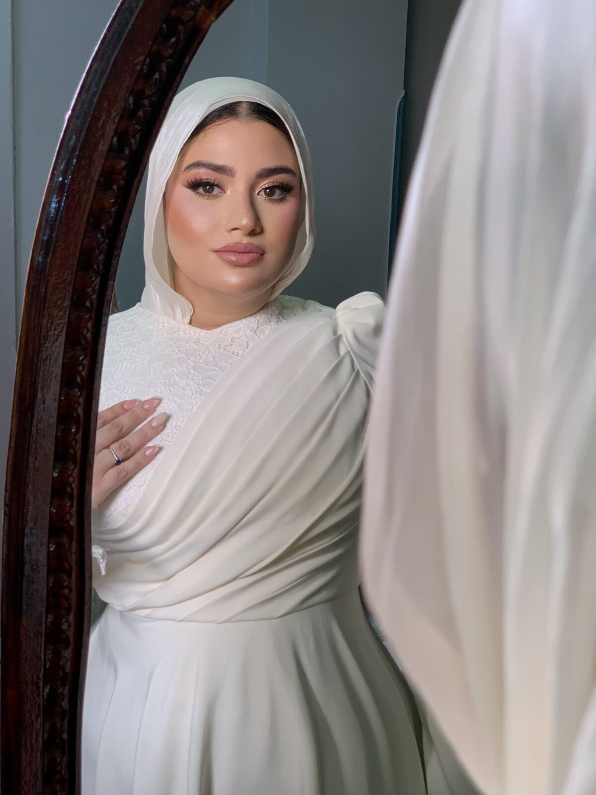 في الفاونديشن، فرح ياسر دايمًا بتميل للدرجات الطبيعية اللي تقرب من لون البشرة الحقيقي. هي مش من محبي الطبقات التقيلة، بالعكس بتحب اللوك اللي يبان طبيعي ويظهر جمال العروسة الحقيقي من غير ما يخفي ملامحها. بتدمج الفاونديشن بطريقة ناعمة ومتساوية لحد ما الوش يبقى موحد ومريح للعين في الحقيقة وفي الصور.