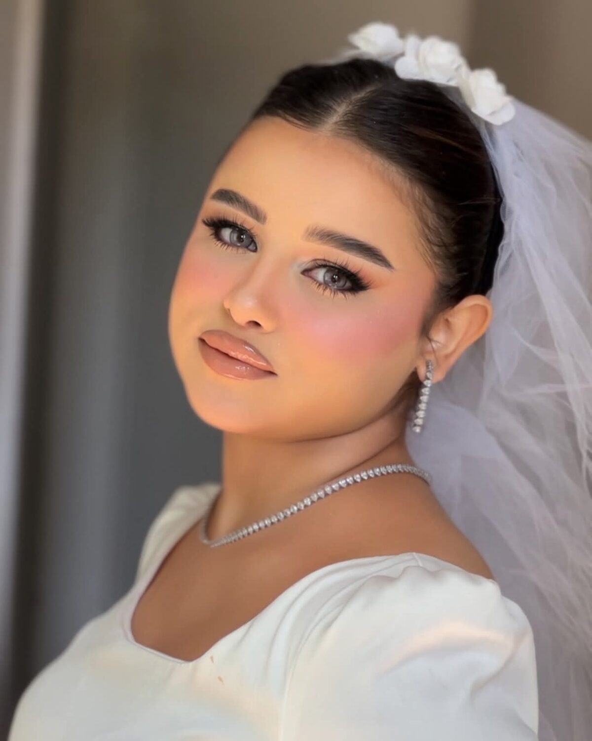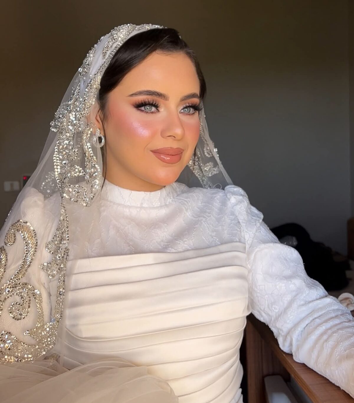 لو كنتي عروسة، فاطمة بتبدأ الجلسة معاك بالكلام عن شكل الفستان، تسريحة الشعر، والألوان اللي بتحبيها. بتسمعك كويس علشان تفهم ذوقك، وتبدأ تختار معاكي درجات الألوان اللي تليق على بشرتك وتكون مناسبة للإضاءة والتصوير. اللوك بيطلع بسيط، ناعم، وثابت طول اليوم.
