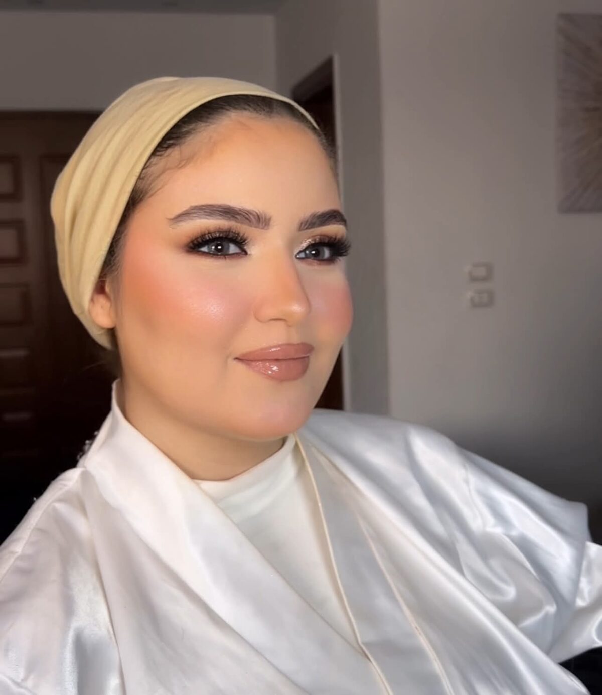 الجلسة معاها بتكون بسيطة وهادية. بتحب تشتغل براحة ومن غير استعجال، وكل خطوة بتتم باتفاق معاكي علشان تكوني حاسة إنك مرتاحة وراضية عن النتيجة. هدفها مش بس إن المكياج يطلع حلو، لكن كمان إنك تطلعي حابة شكلك ومش حاسة إن في حاجة زيادة أو مش شبهك.