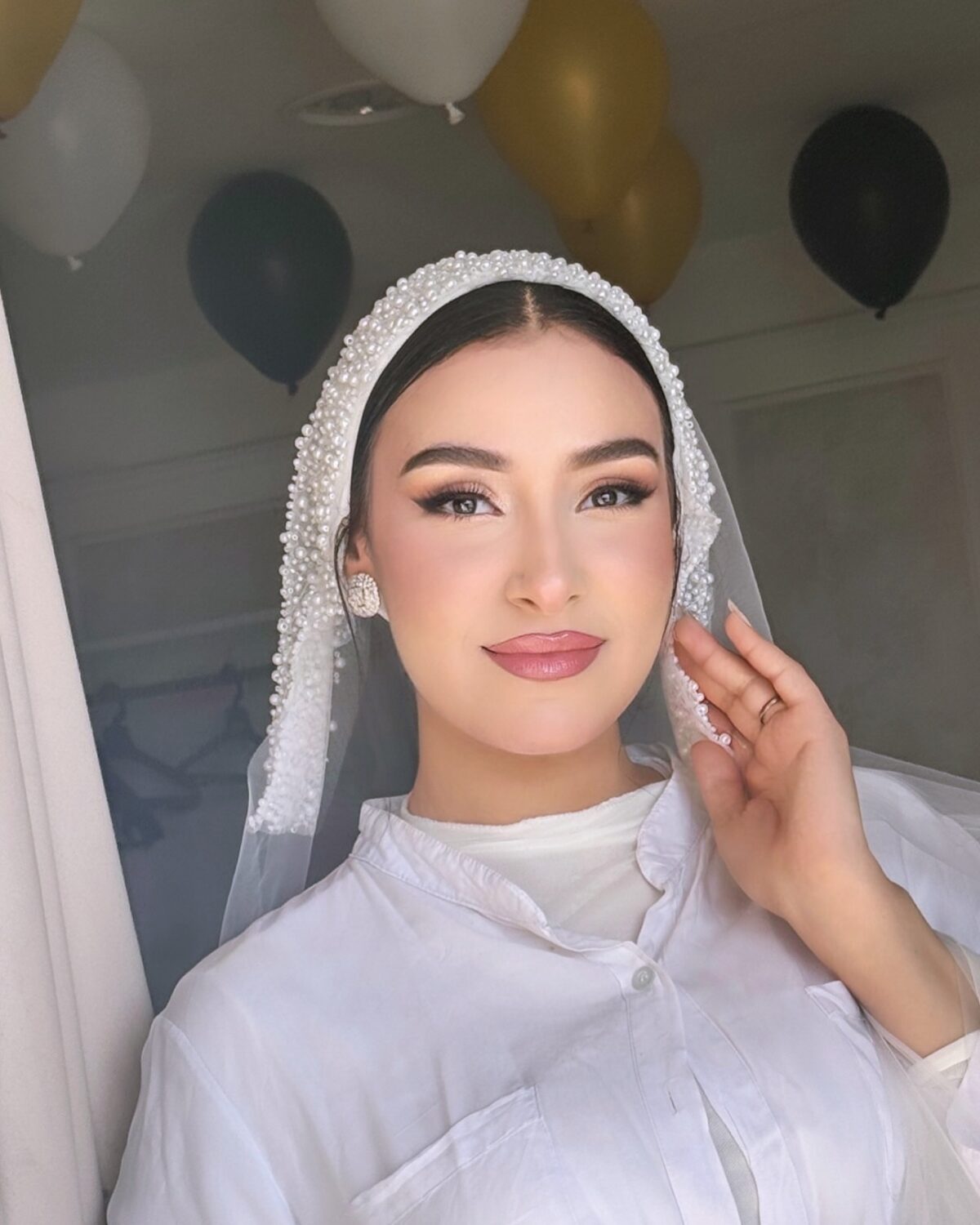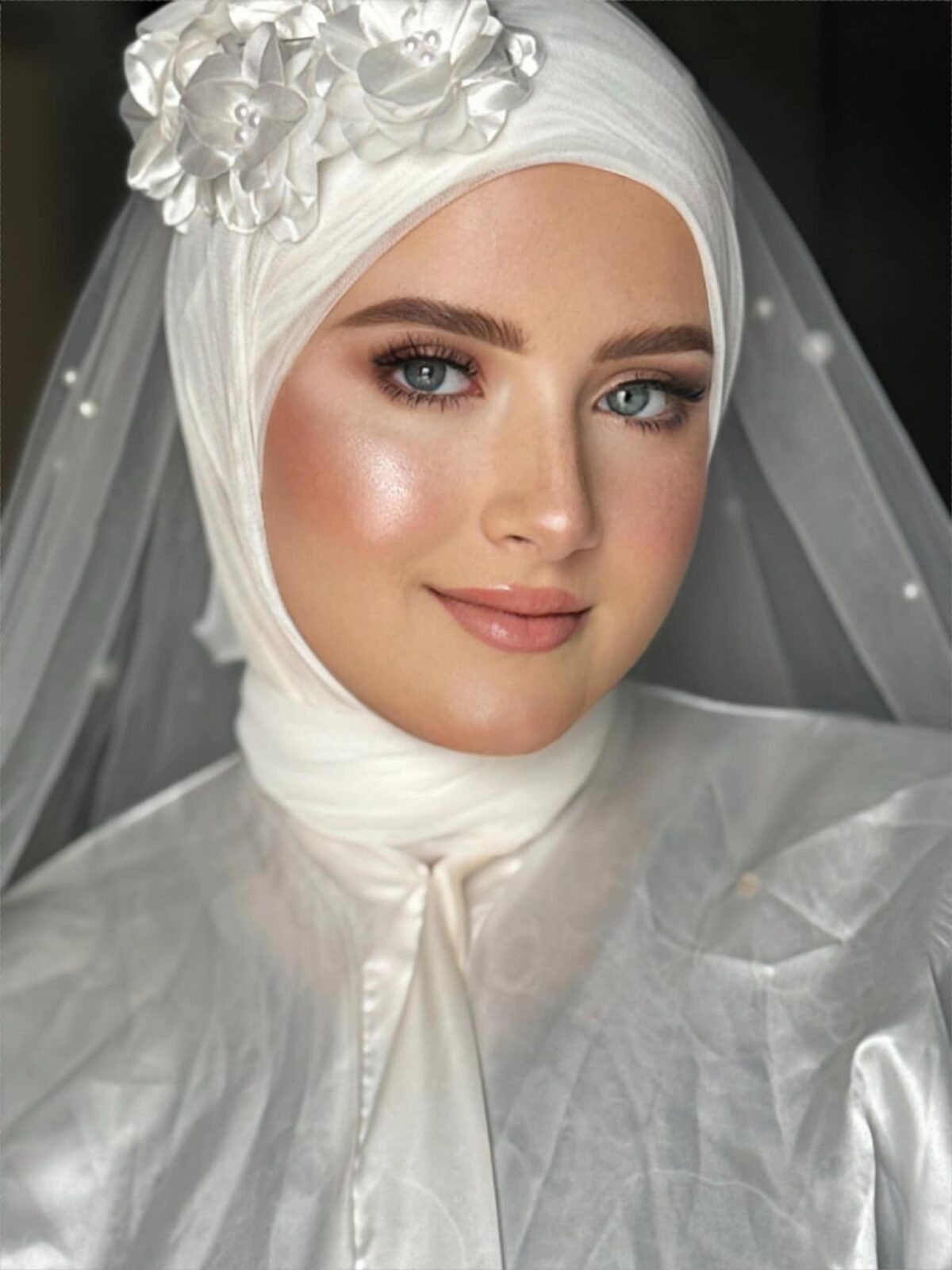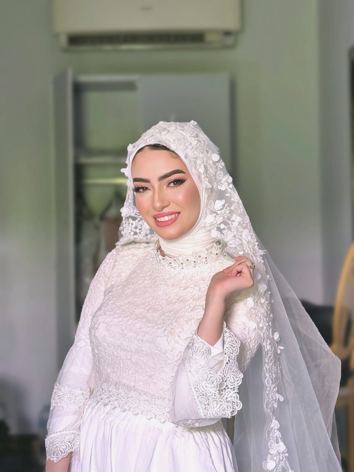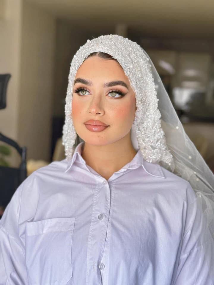 مودة محسن كمان بتركّز جدًا على ثبات الميكب. بتستخدم مثبتات عالية الجودة وبتوزعها بطريقة تخلي اللوك ثابت وطبيعي مهما كان اليوم طويل أو الحركة كتير. وده بيدي للعروسة إحساس إنها هتفضل جميلة ومظبوطة من أول النهار لحد آخر لحظة.