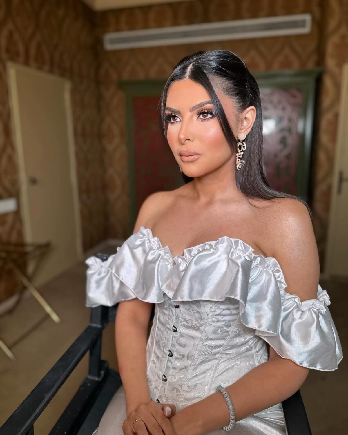 لو كنتي عروسة، ميرنا بتبدأ الجلسة معاك بالكلام عن الفستان، الستايل اللي بتحبيه، واللوك اللي متخيلة تطلعي بيه في اليوم ده. بعد كده بتظبط معاكي درجات الألوان اللي تليق على بشرتك، وتوزيع المكياج اللي يخلي اللوك ثابت وطبيعي في نفس الوقت، سواء للصور أو قدام الناس.