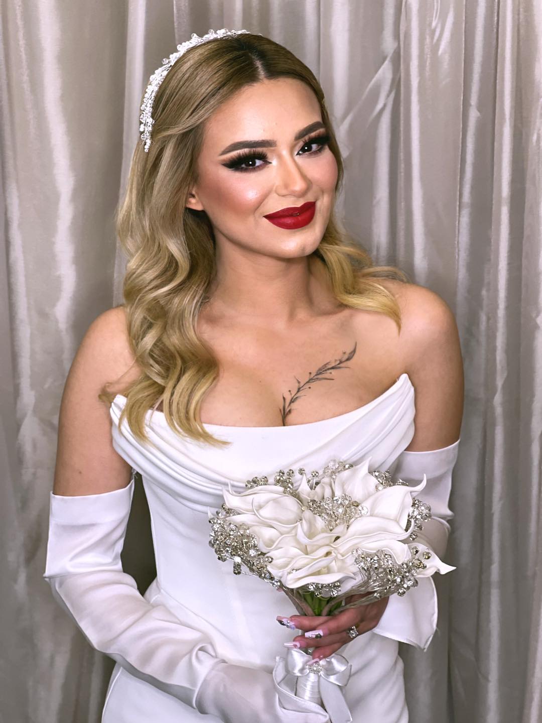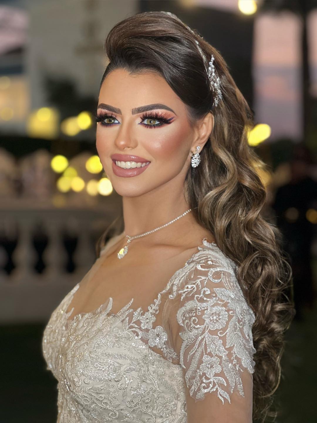 نانسي التركي كمان بتركّز جدًا على ثبات الميكب. بتستخدم مثبتات قوية وتوزعها كويس عشان اللوك يفضل ثابت وطبيعي طول اليوم مهما كانت الحركة أو الحرارة. وده بيدي للعروسة إحساس إنها هتفضل متألقة وجميلة لآخر لحظة.
