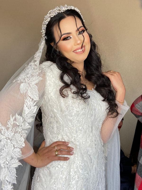 في يوم الفرح، أمنية بتركز على إن العروسة تطلع بشكل هادي وبسيط، من غير ما تحس إنها متغيرة أو في شكل مش شبهها. بتشتغل على تظبيط البشرة بأدوات مناسبة، وبتختار الألوان اللي تليق مع لون البشرة والفستان والإضاءة، وده بيساعد إن اللوك يبان حلو في الصور وكمان في الحقيقة.