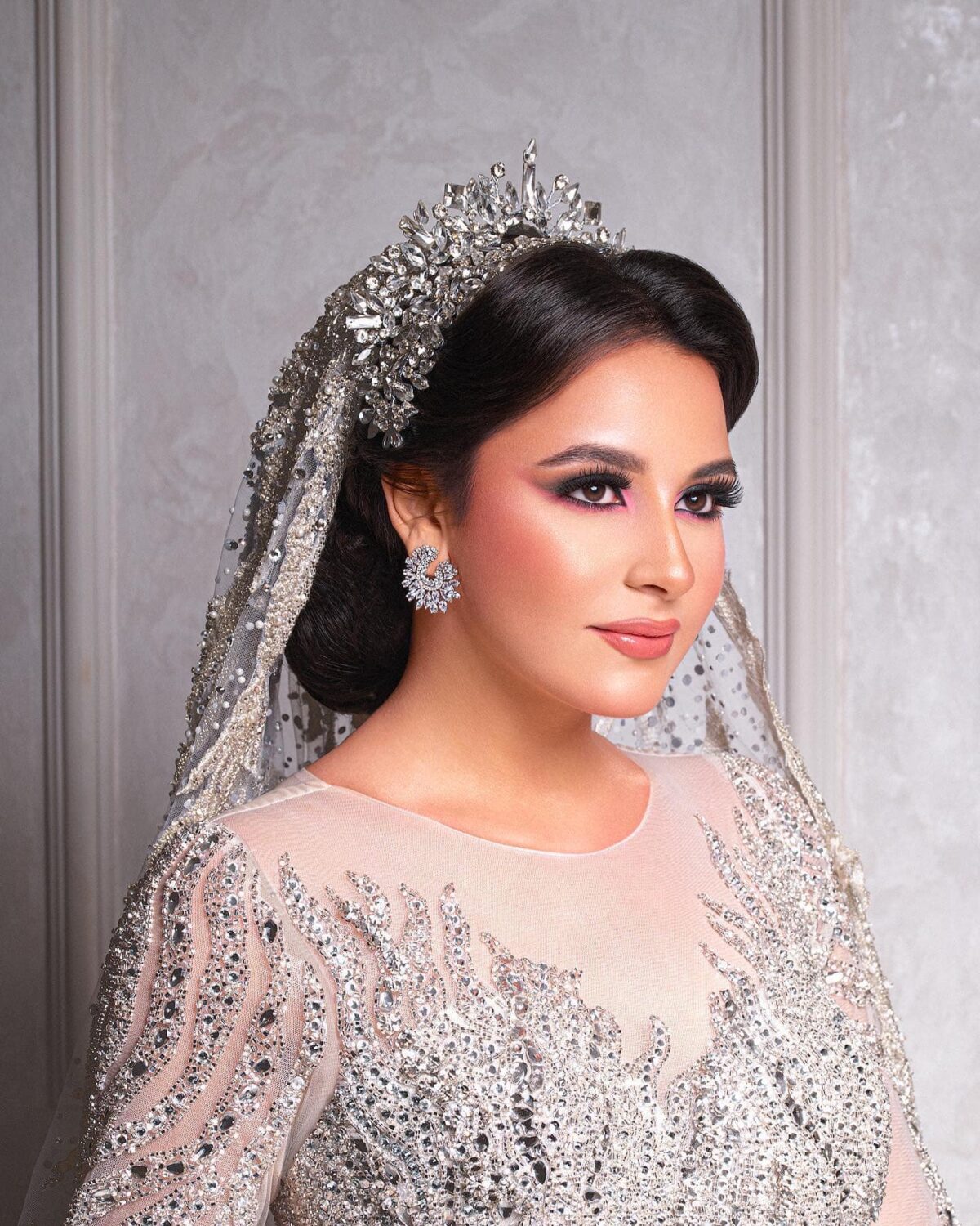 أما في تحديد الملامح، أسلوب فاتن دايمًا هادي ومظبوط. بتعمل كونتور بسيط يبرز الخدود ويرسم الجانبين من غير خطوط واضحة أو مبالغة. الهايلايت عندها خفيف جدًا وموزون، بتحطه في الأماكن اللي تدي إضاءة طبيعية وتبرز الملامح بشكل ناعم. وده بيخلي اللوك كله شكله راقي ومناسب للعرايس اللي بيحبوا الشكل الطبيعي.