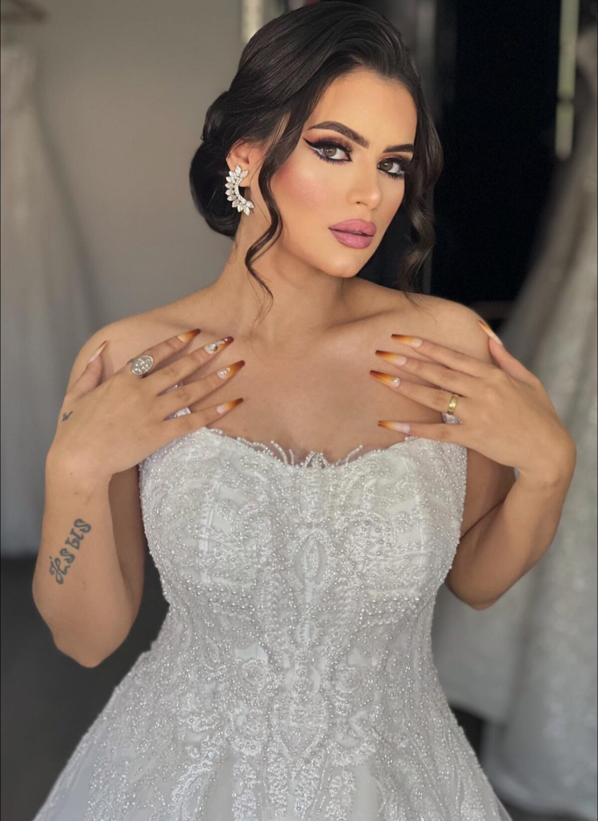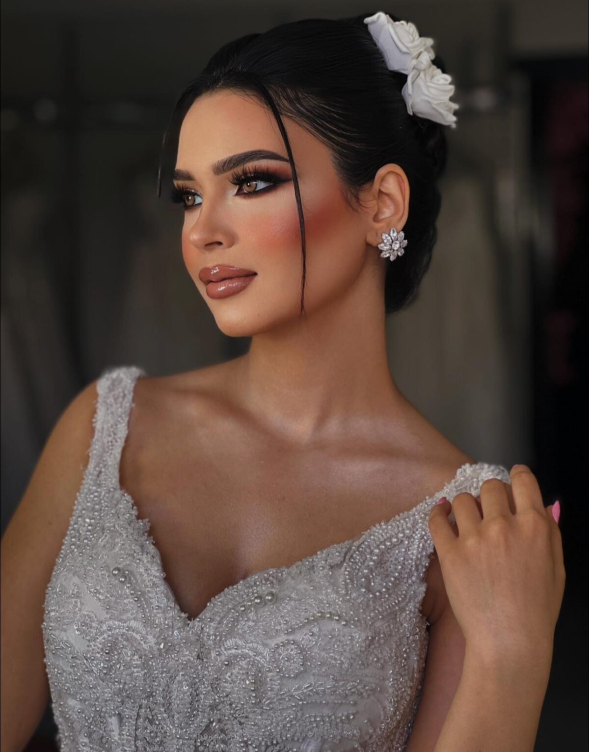 في تجهيزات العرايس، تما بتركز على التفاصيل الصغيرة اللي بتفرق في الشكل النهائي. بتشتغل على إطلالة هادية وناعمة تبين ملامحك وتخلي صورك شكلها مريح وطبيعي. بتظبط كريم الأساس، الكونتور، والهايلايت بطريقة خفيفة، وكل ده بيخلي اللوك ثابت ومناسب ليوم طويل زي يوم الفرح.