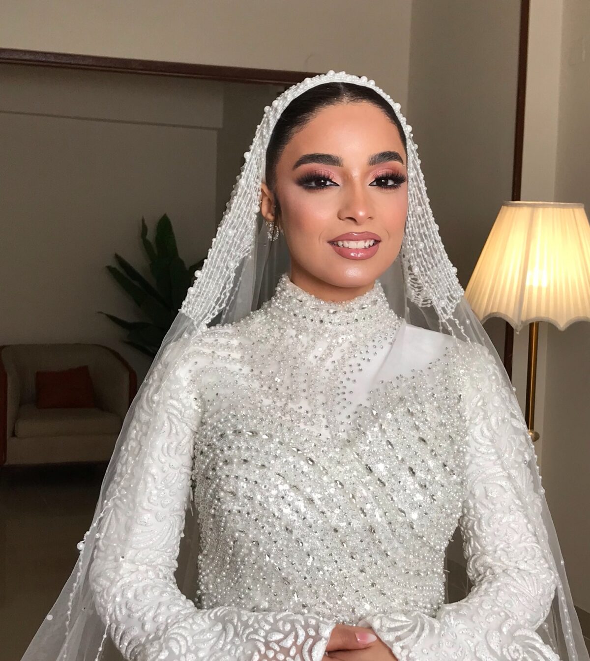 مريم إبراهيم كمان بتركّز جدًا على ثبات الميكب. بتستخدم مثبتات قوية وتوزعها كويس عشان اللوك يفضل ثابت وطبيعي طول اليوم. وده بيدي للعروسة إحساس إنها هتفضل جميلة ومظبوطة من أول لحظة لآخر لحظة.