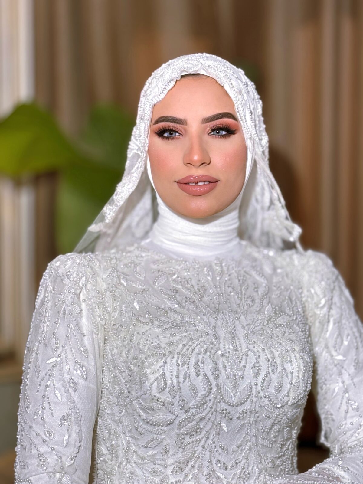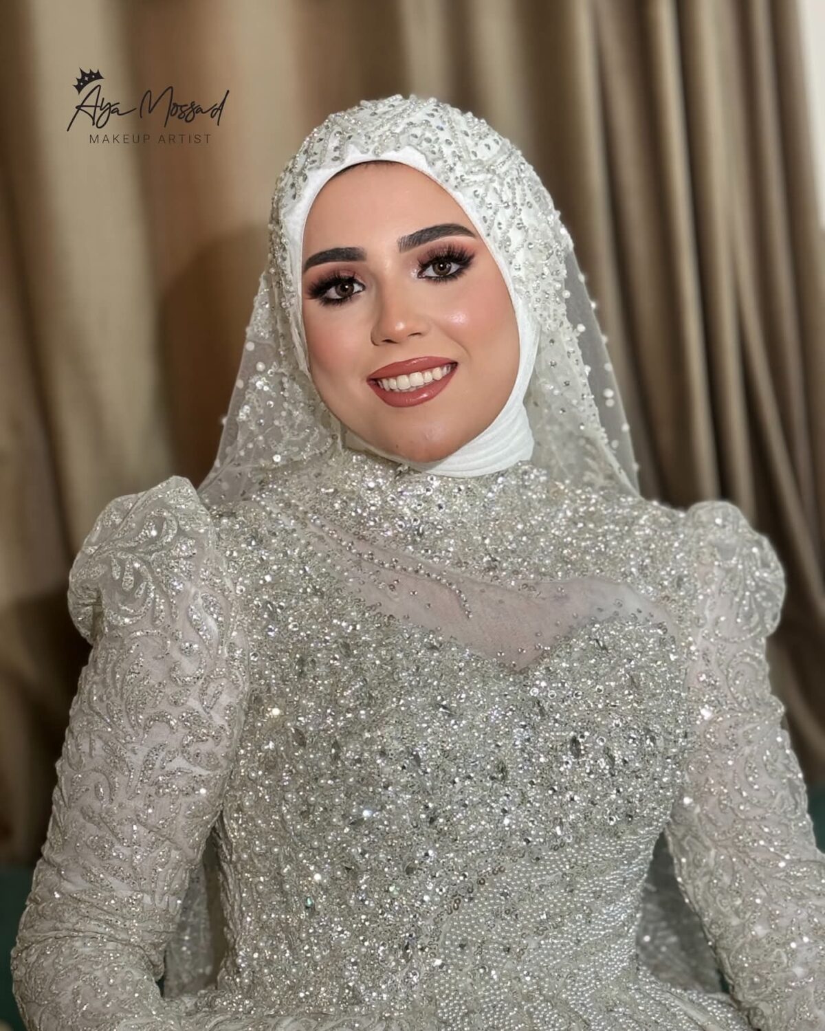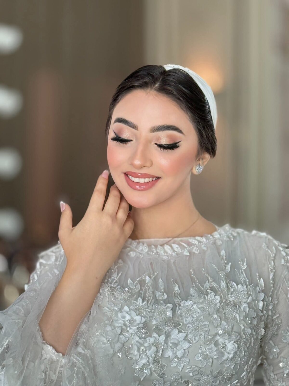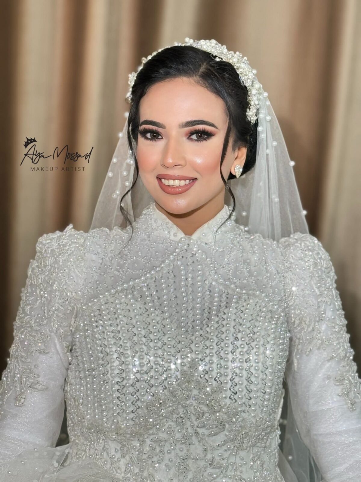 لو كنتي عروسة، آية بتشتغل على إطلالة هادية وناعمة تليق بيومك. بتستخدم ألوان مناسبة مع الفستان والإضاءة، وبتهتم إنها تختار درجات متناسقة مع بشرتك وشعرك عشان تباني بأحلى شكل من غير ما تحسي إن شكلك متغير. التركيز دايمًا بيكون على إنك تباني مرتاحة وشكلك طبيعي بس بشكل أجمل.