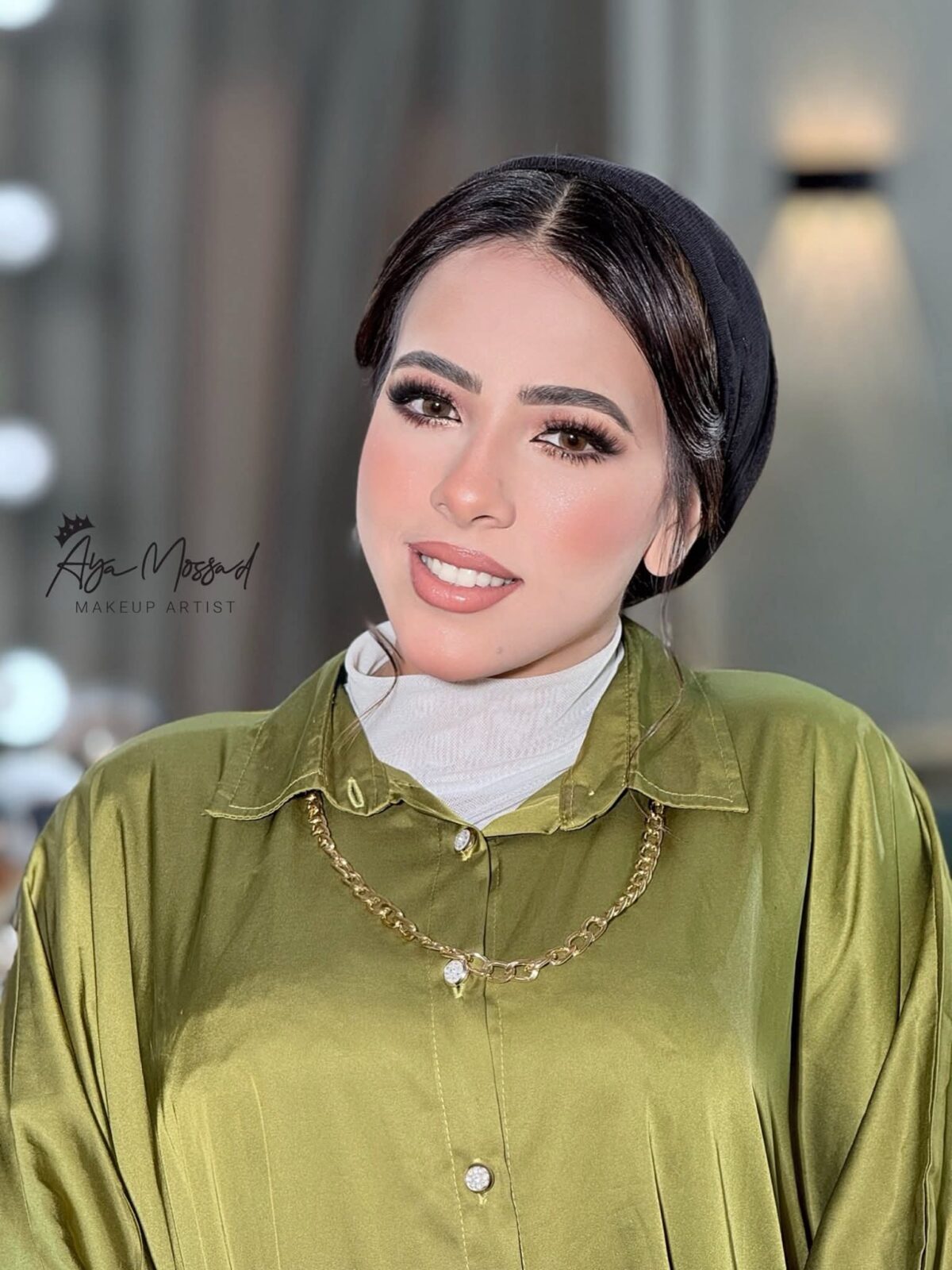المكان اللي بتشتغل فيه آية مسعد بيتميز بالهدوء والنظافة، وده بيخلي كل عميلة تحس إنها في مكان مريح تقدر فيه تسترخي وتستمتع بتجربة المكياج. الأدوات كلها بتكون معقمة ونضيفة، والإضاءة مناسبة عشان تقدري تشوفي اللوك بشكل واضح أثناء الجلسة.