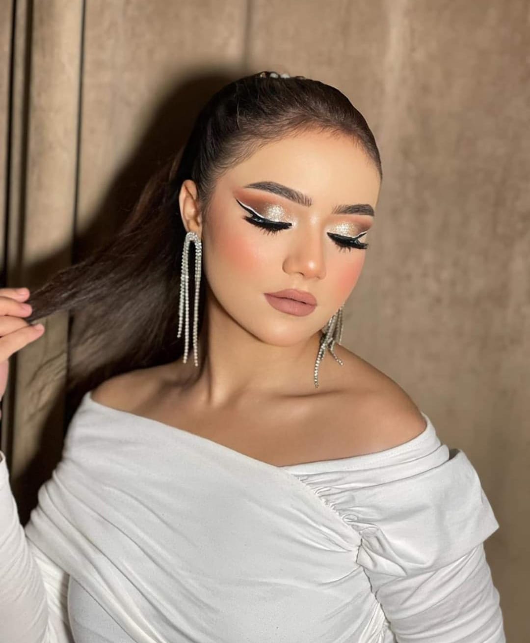 أما بالنسبة للعيون فهي من أقوى النقاط في شغل أميرة علي. عندها شغف كبير في اختيار درجات الشادو المناسبة لكل بنت، سواء اللوك الترابي الهادي اللي أغلب البنات بتحبه أو دمج بسيط يدي عمق وجاذبية للعين. بتركز على إن الرسمة تفتح العين وتدي شكل ناعم ومميز، وكمان بتختار الرموش اللي تناسب شكل العين سواء فردية أو خفيفة عشان تدّي شكل طبيعي ومتكامل.