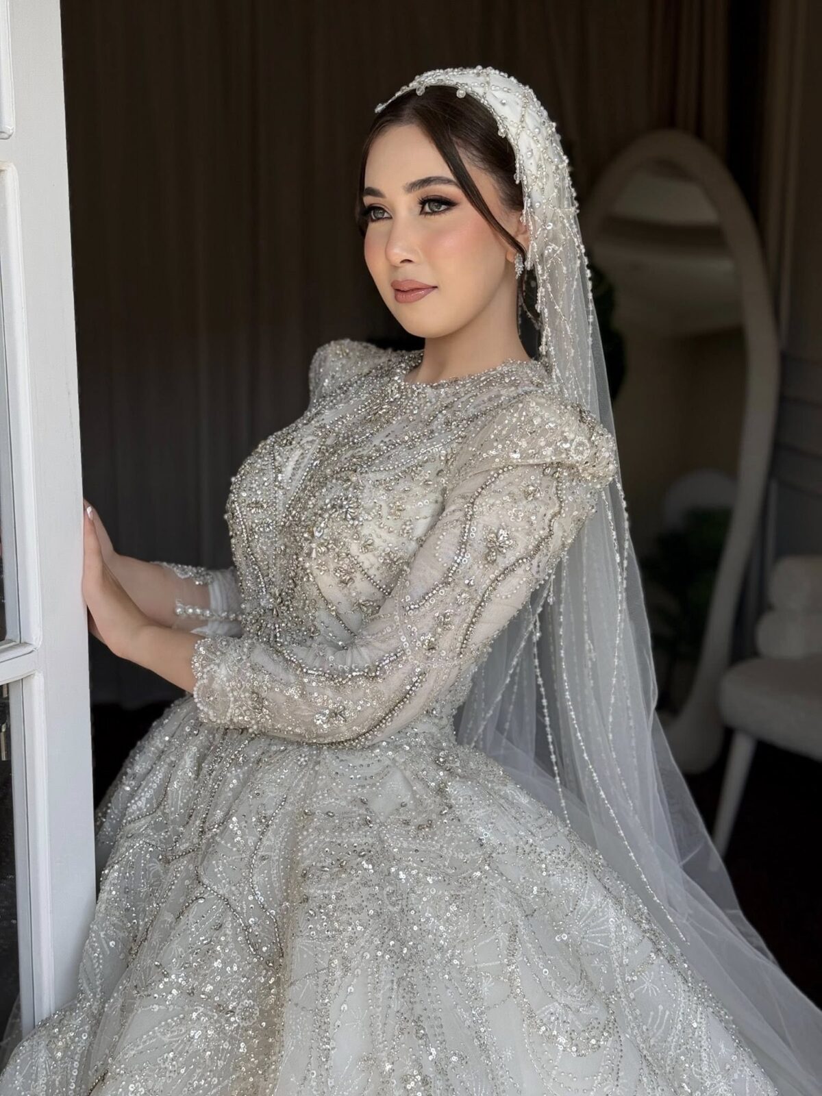 سارة بهنسي كمان بتركّز على ثبات الميكب. بتستخدم مثبتات قوية وبتوزعها بطريقة تضمن إن اللوك يفضل ثابت وطبيعي مهما كان اليوم طويل أو فيه حركة كتير. وده بيدي للعروسة إحساس إنها هتفضل جميلة ومظبوطة من أول لحظة لآخر اليوم.