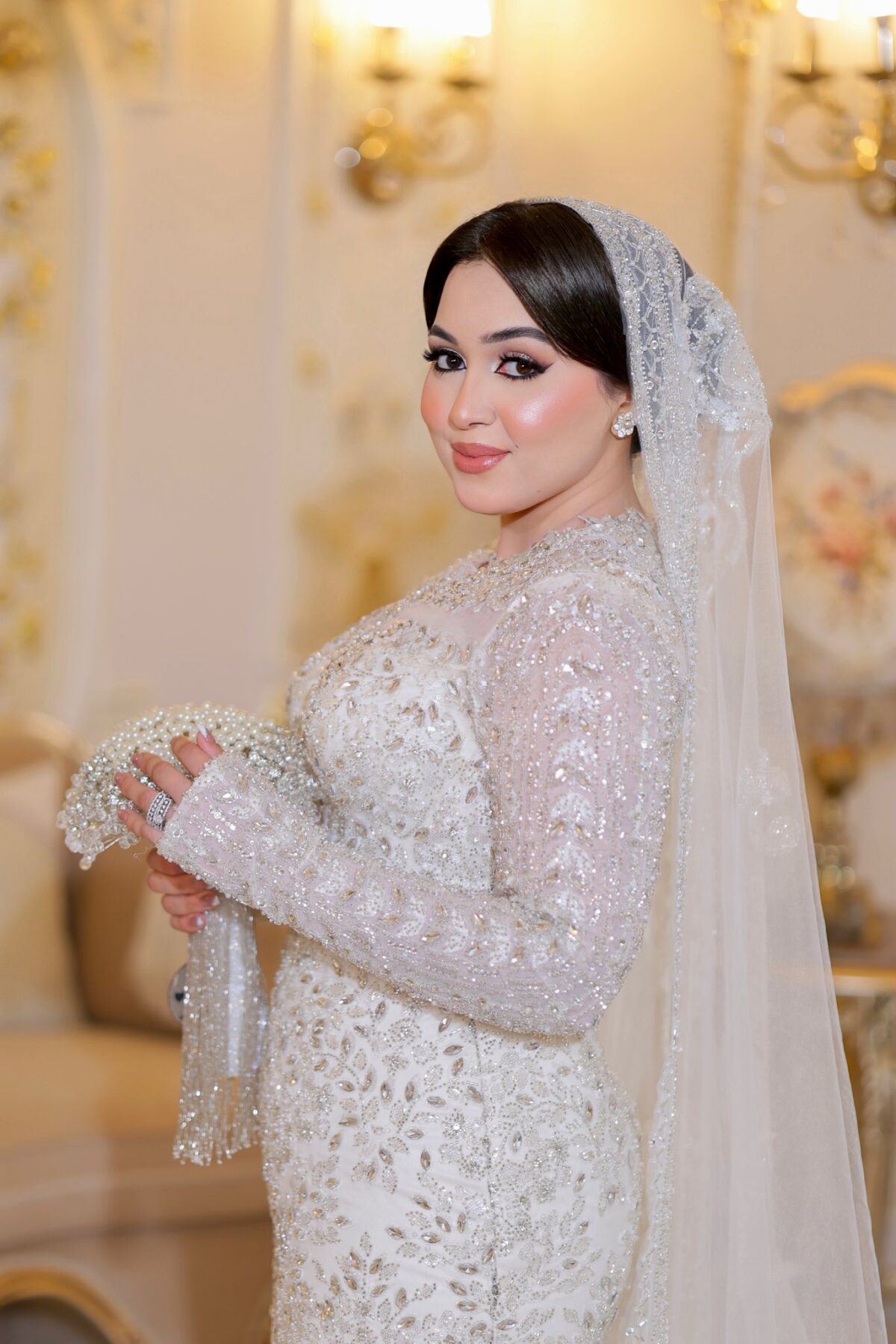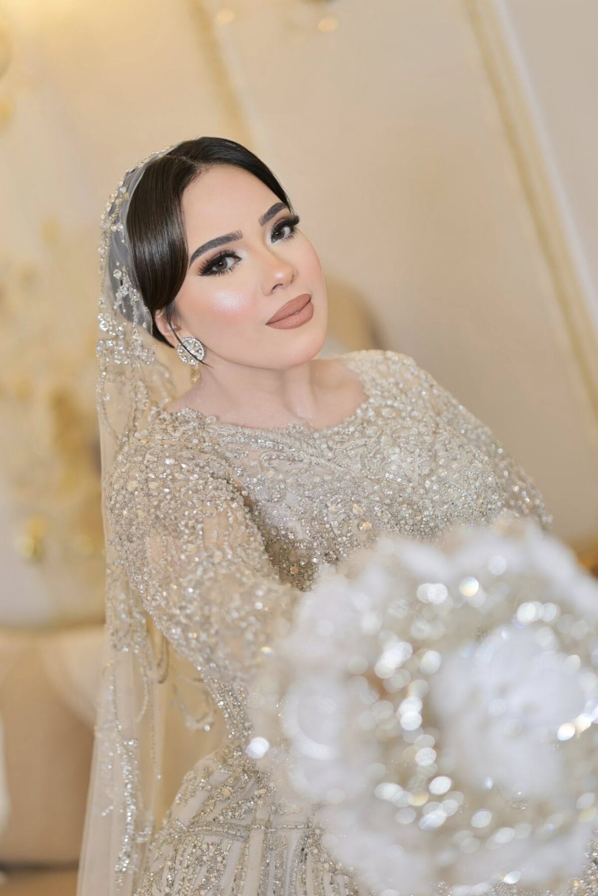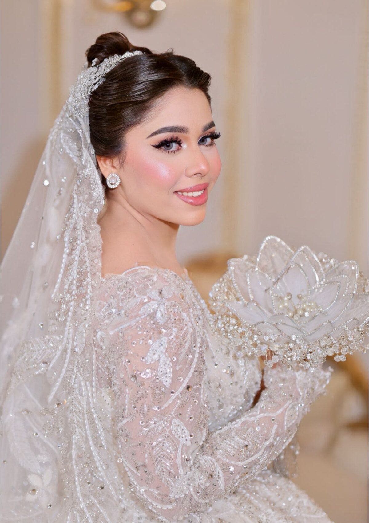 إنجي أبو العز كمان بتركّز جدًا على ثبات الميكب. بتستخدم مثبتات قوية وتوزعها بطريقة تضمن إن اللوك يفضل ثابت وطبيعي مهما كان اليوم طويل أو فيه حركة كتير. وده بيدي للعروسة إحساس إنها هتفضل في أجمل شكل من أول لحظة لآخر اليوم.