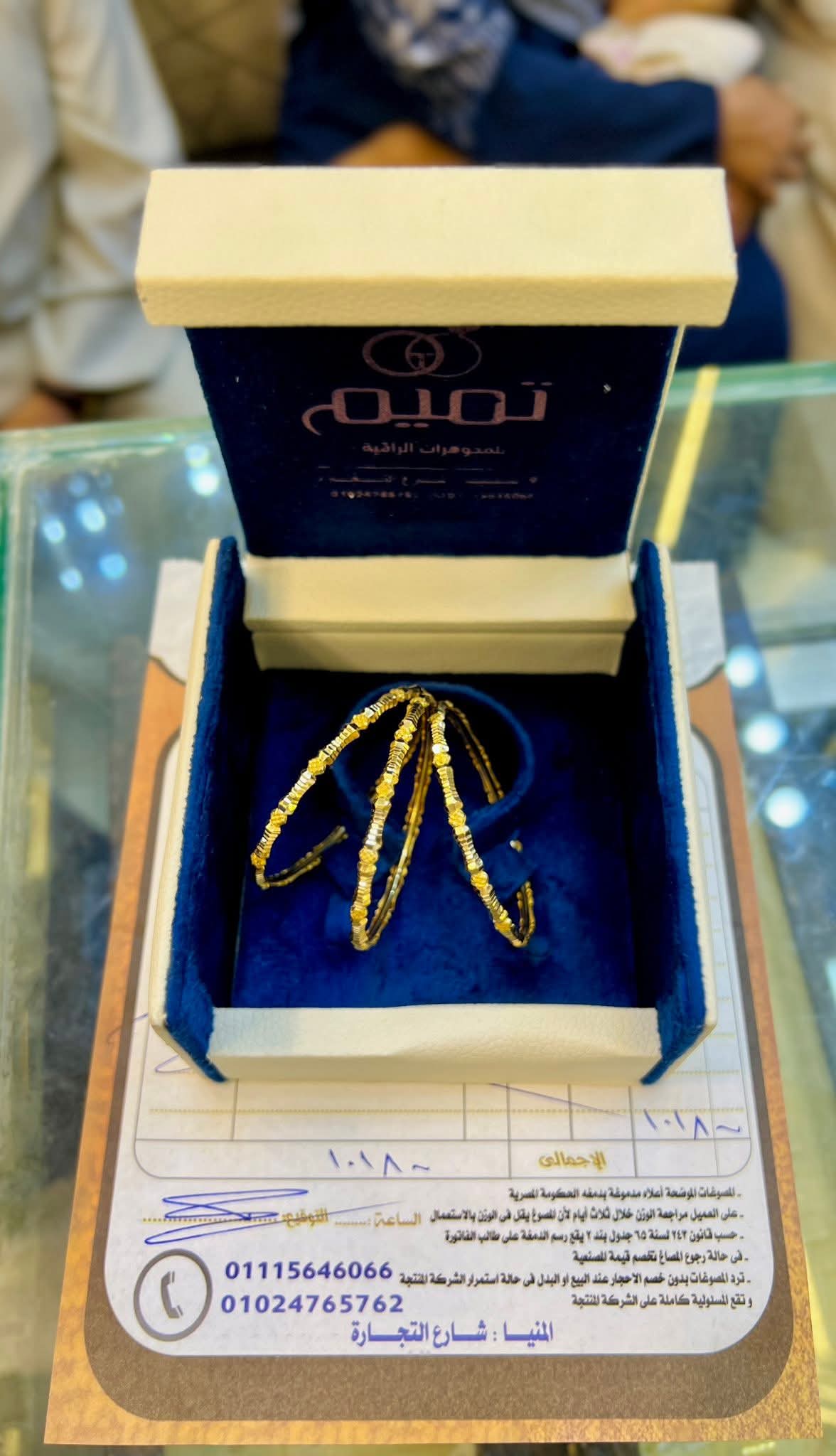 مجوهرات تميم كمان بيقدّم شهادات ضمان واضحة لكل قطعة. الشهادة بيكون مكتوب فيها الوزن والعيار وتفاصيل الشغل، وده بيدي إحساس كبير بالثقة إن القطعة أصلية ومضمونة ومفيهاش أي مشكلة. الضمان كمان بيسهّل أي تعديل أو صيانة بعد الجواز لو احتجت تعمل تلميع أو تغيير بسيط.