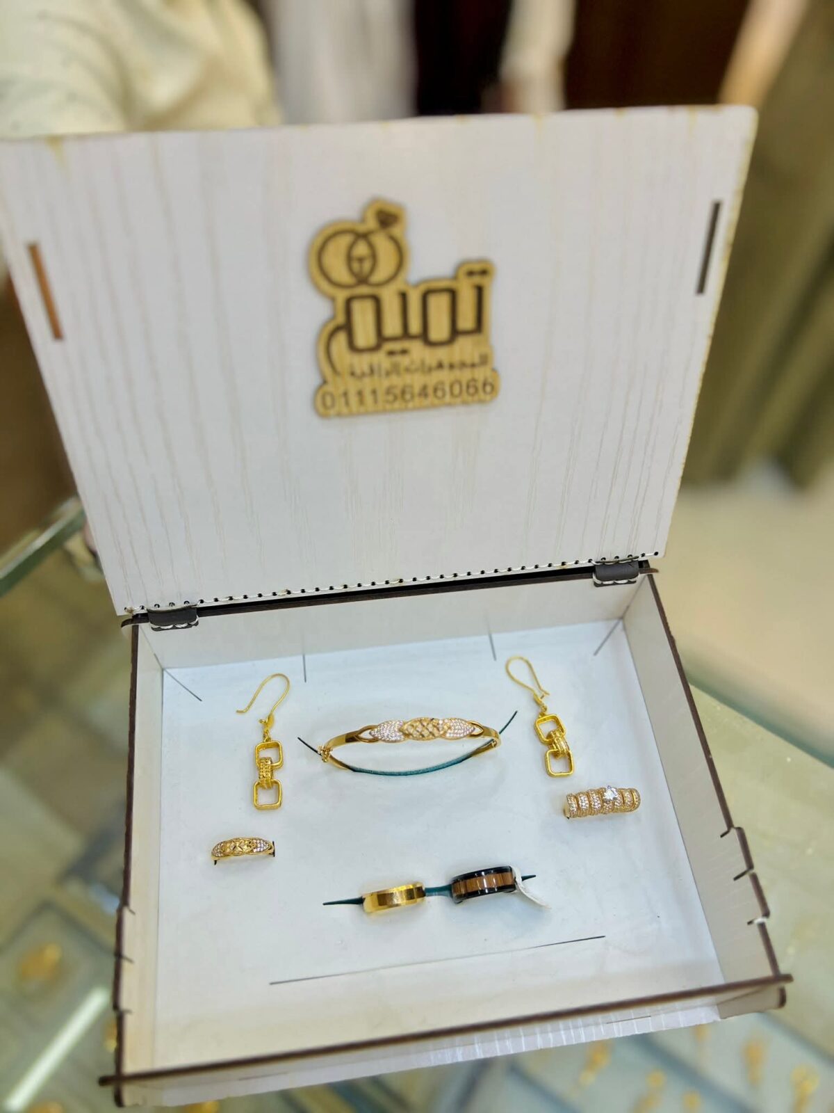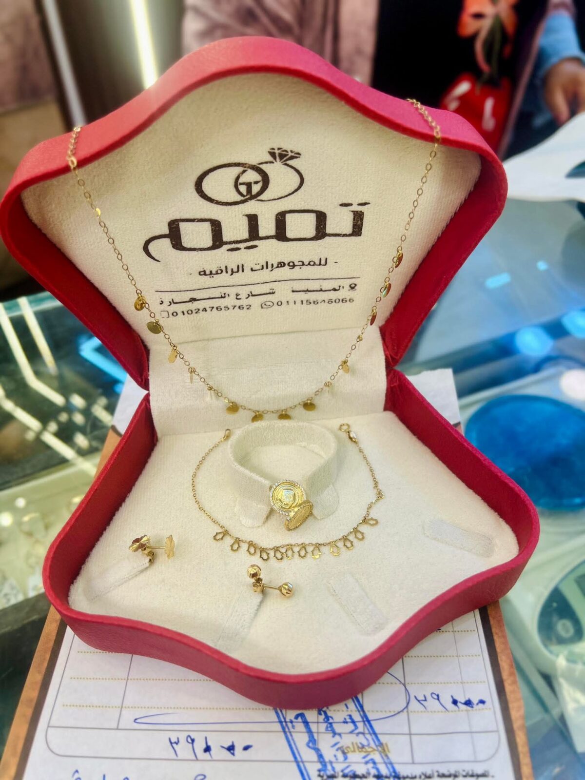 ولو العروسة نفسها تعمل موديل خاص بيها، مجوهرات تميم بيوفّر خدمة التصميم الخاص. تقدري تجيبي صورة موديل عجبك أو حتى فكرة في دماغك، وهيتنفذ ليكي بالشكل اللي يناسبك وبالوزن اللي يناسب ميزانيتك. الخدمة دي بتعمل فرق كبير لأنها بتخلي القطعة ليها طابع شخصي ومختلف ومش موجود عند أي حد تاني.