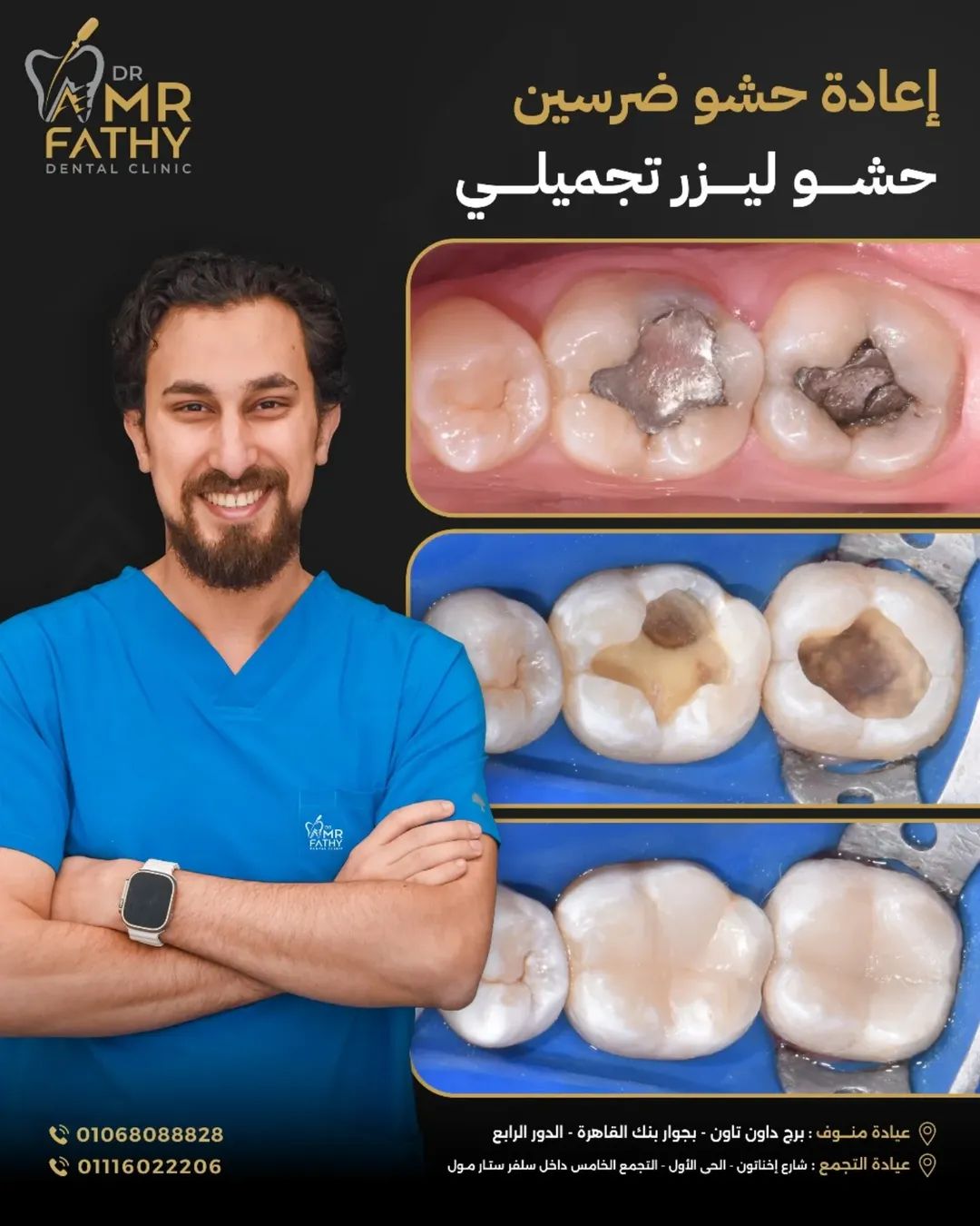 باختصار، Dr. Amr Fathy Dental Clinic مش مجرد عيادة أسنان، لكنها مركز متكامل للعناية بصحة الفم وجمال الابتسامة. سواء محتاج علاج بسيط، زراعة، تجميل شامل، أو استعداد قبل الفرح، هناك هتلاقي كل اللي محتاجه بأسلوب راقي وشغل فعلاً يستحق الثقة. لو بتدور على دكتور محترف، دقيق، وبيشتغل بذوق وضمير، فـ الدكتور عمرو فتحي هو الاسم اللي أكيد هتخرج من عنده بابتسامة جميلة وواثقة من أول زيارة.