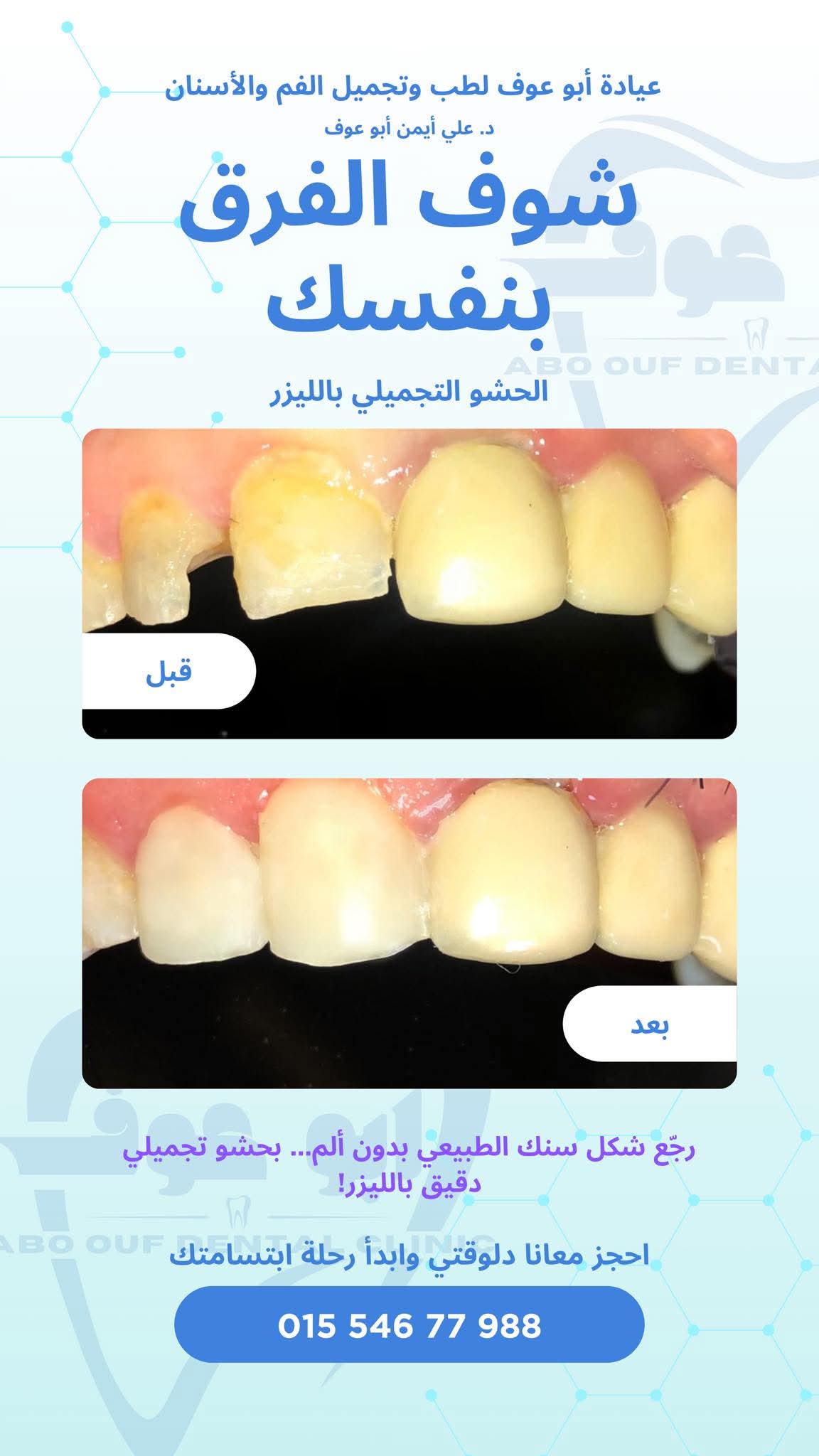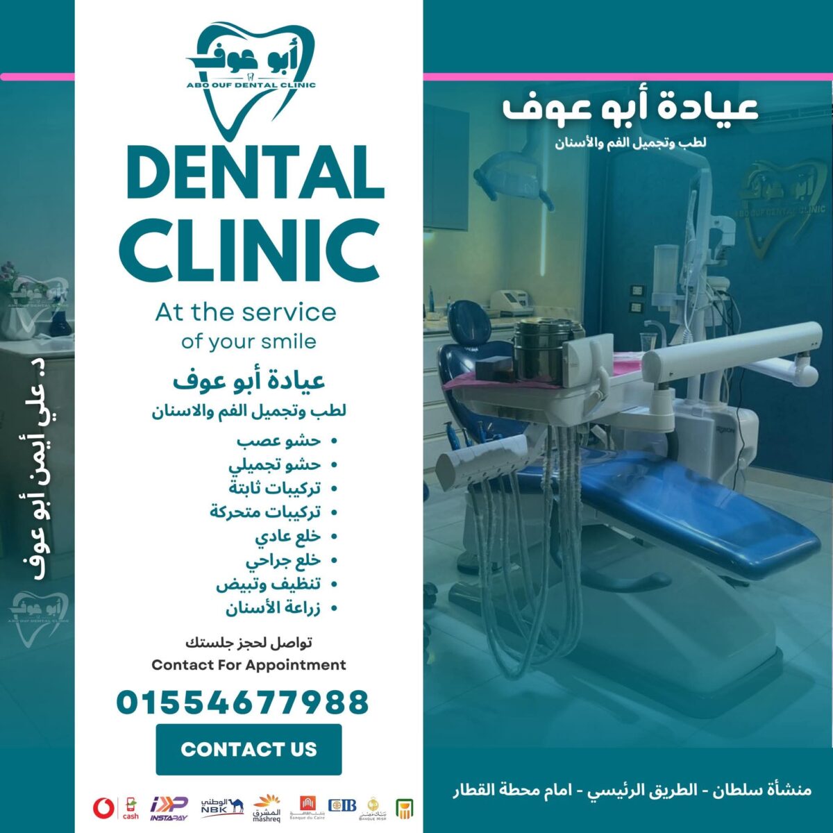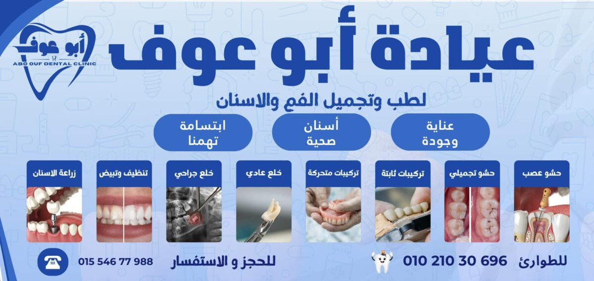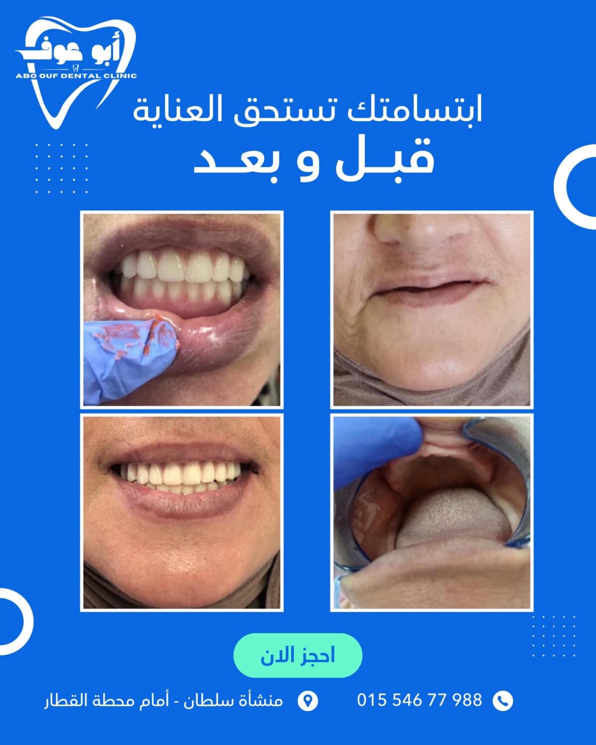 باختصار، Abo Ouf Dental Clinic مش مجرد عيادة أسنان، لكنها مركز متكامل للعناية بصحة الفم وجمال الابتسامة. سواء محتاج علاج بسيط، زراعة، تجميل شامل، أو استعداد قبل الفرح، هناك هتلاقي كل اللي محتاجه بأسلوب راقي وشغل فعلاً يستحق الثقة. لو بتدور على دكتور محترف وعيادة بتفهمك وتهتم بتفاصيلك، فـ Abo Ouf Dental Clinic هو المكان اللي أكيد هتخرج منه بابتسامة جميلة وواثقة من أول زيارة.