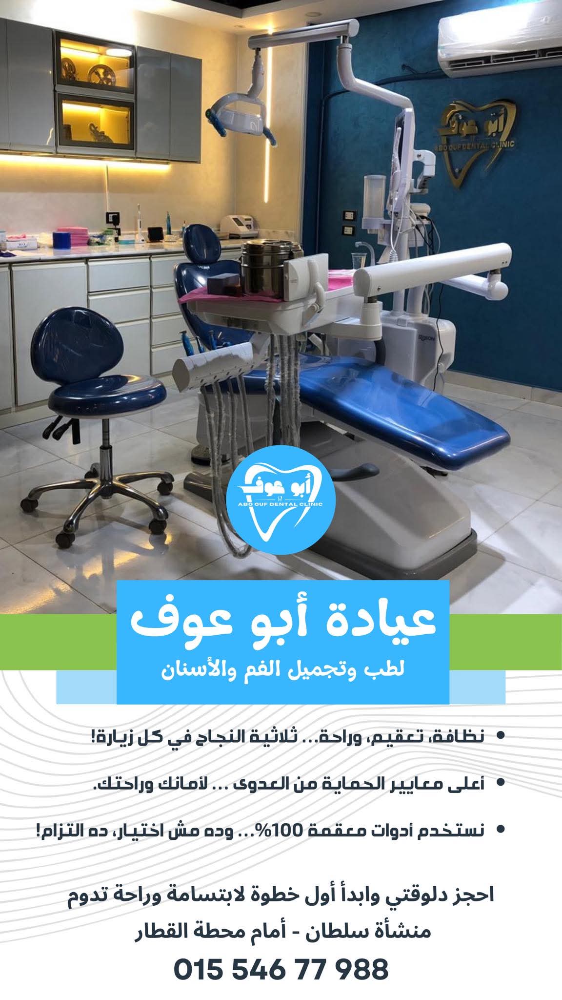 عيادة Abo Ouf Dental Clinic من العيادات اللي بقت ليها مكانة كبيرة جدًا في عالم طب وتجميل الأسنان في مصر، لأنها بتجمع بين الخبرة الطويلة، التكنولوجيا الحديثة، والمعاملة الراقية اللي بتخلي المريض يعيش تجربة مريحة ومختلفة من أول زيارة. المكان نفسه أنيق جدًا ومجهز على أعلى مستوى، فيه هدوء ونظافة وتنظيم يخلوك تحس إنك في مركز متكامل مش مجرد عيادة.