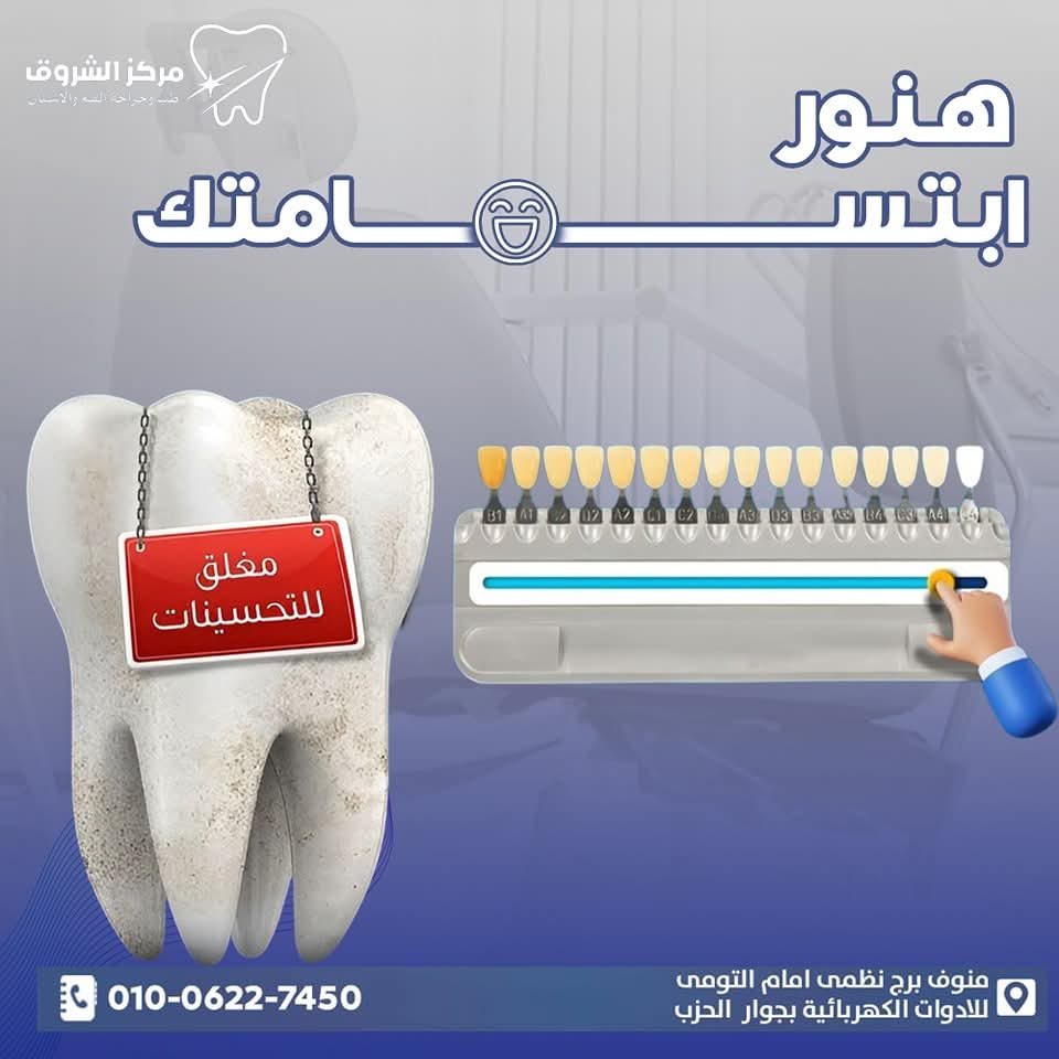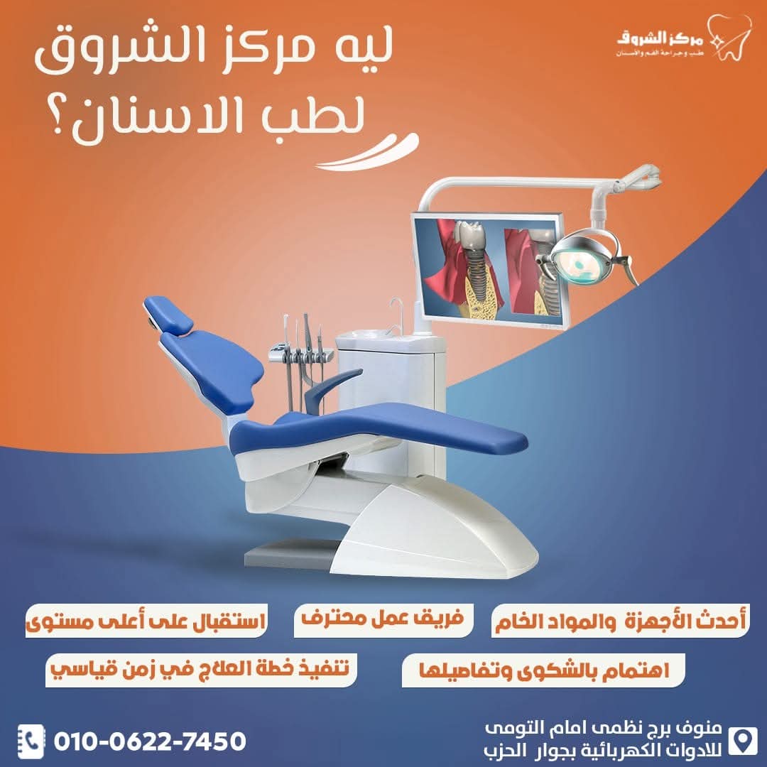 باختصار، مركز الشروق مش مجرد عيادة أسنان، لكنه مركز متكامل للعناية بصحة الفم وجمال الابتسامة. سواء محتاج علاج بسيط، زراعة، تجميل شامل، أو تجهيز قبل الفرح، هناك هتلاقي كل اللي محتاجه بأسلوب راقي وشغل فعلاً يستحق الثقة. لو بتدور على مكان يهتم براحتك ويقدملك خدمة طبية محترفة، فـ مركز الشروق هو المكان اللي أكيد هتخرج منه بابتسامة جميلة وواثقة من أول زيارة.