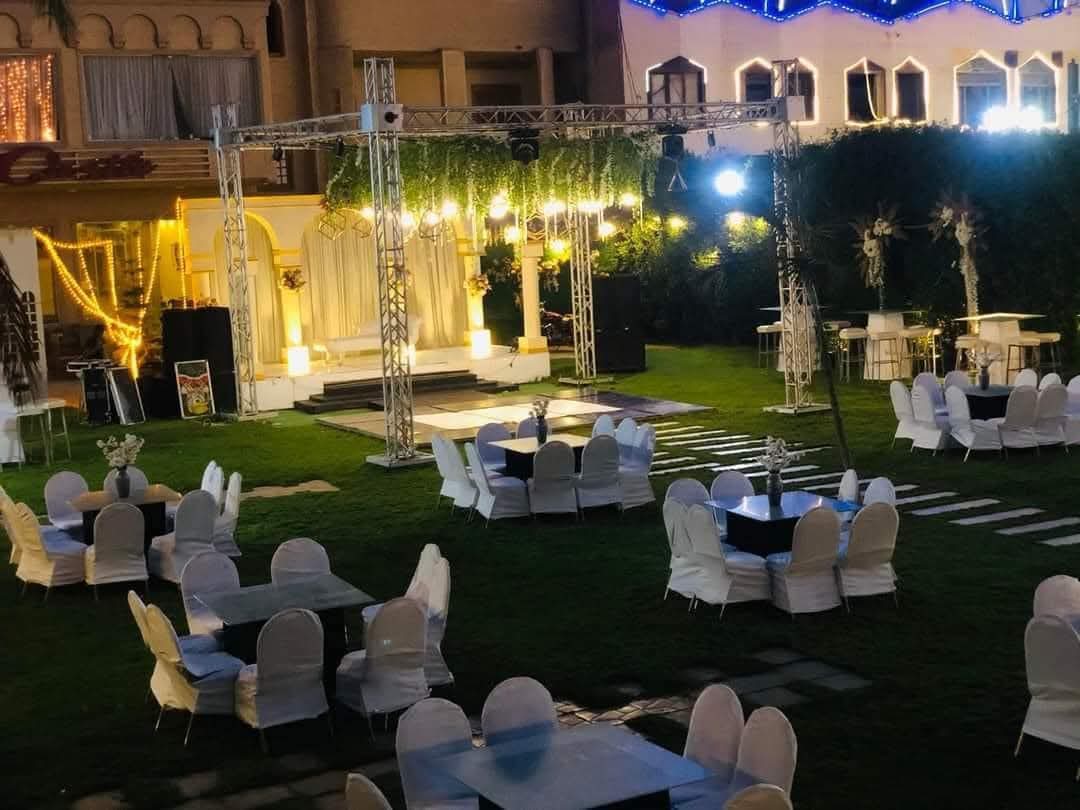 المكان مجهز علشان يستوعب عدد كبير من الضيوف، مع مرونة في ترتيب الطاولات والكراسي حسب طبيعة الحفل.