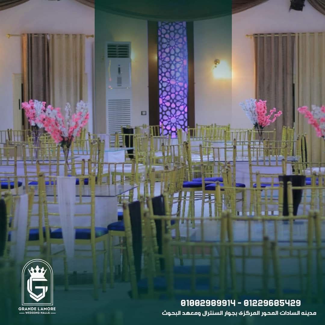 قبل سنتينقاعة جراند لامور مدينة السادات طريق اسكندريه الصحراوي مرحبا يا أيها الزائر قاعة جراند لامور قاعة ممتازه جدا لاقامة الافراح العائليه علي اعلي مستوي من الفخامة و التميز يوفر المكان 2 من قاعة الافراح بمساحات مختلفه يمكنها استيعاب عدد كبير جدا من الزوار و اقامه 2 حفل زفاف في الوقت نفسه مع وجود طاقم خدمة مميز جدا في قاعه لامور التي تحتوي علي جميع المرافق الخدمية الممتازه و تستحق قاعه لامور 5 نجوم لوجودها المتميز في مدينه السادات و الموقع المميز لها حيث انها بعيده قليلا من المساكن العامه و هذا ما يجعلها مميز حيث انها يوجد بها سماعات دي جي عاليه لا يمكنها مضايقه المساكن القريبه منها لعزلتها قليله عنهم والمميز في المكان ان هناك قاعه مكشوفه سقف مفتوح للطل مناسبه للاجواء الصيفيه اما القاعه الكبيره مغطاه ويمكنها استيعاب عدد كبير من الزوار في الاجواء الشتويه و بهما ديكورات واضواء ممتازه شكرا طاقم قاعة جراند لامور مدينه السادات علي وجودكم المميز في هذا المكان الرائع