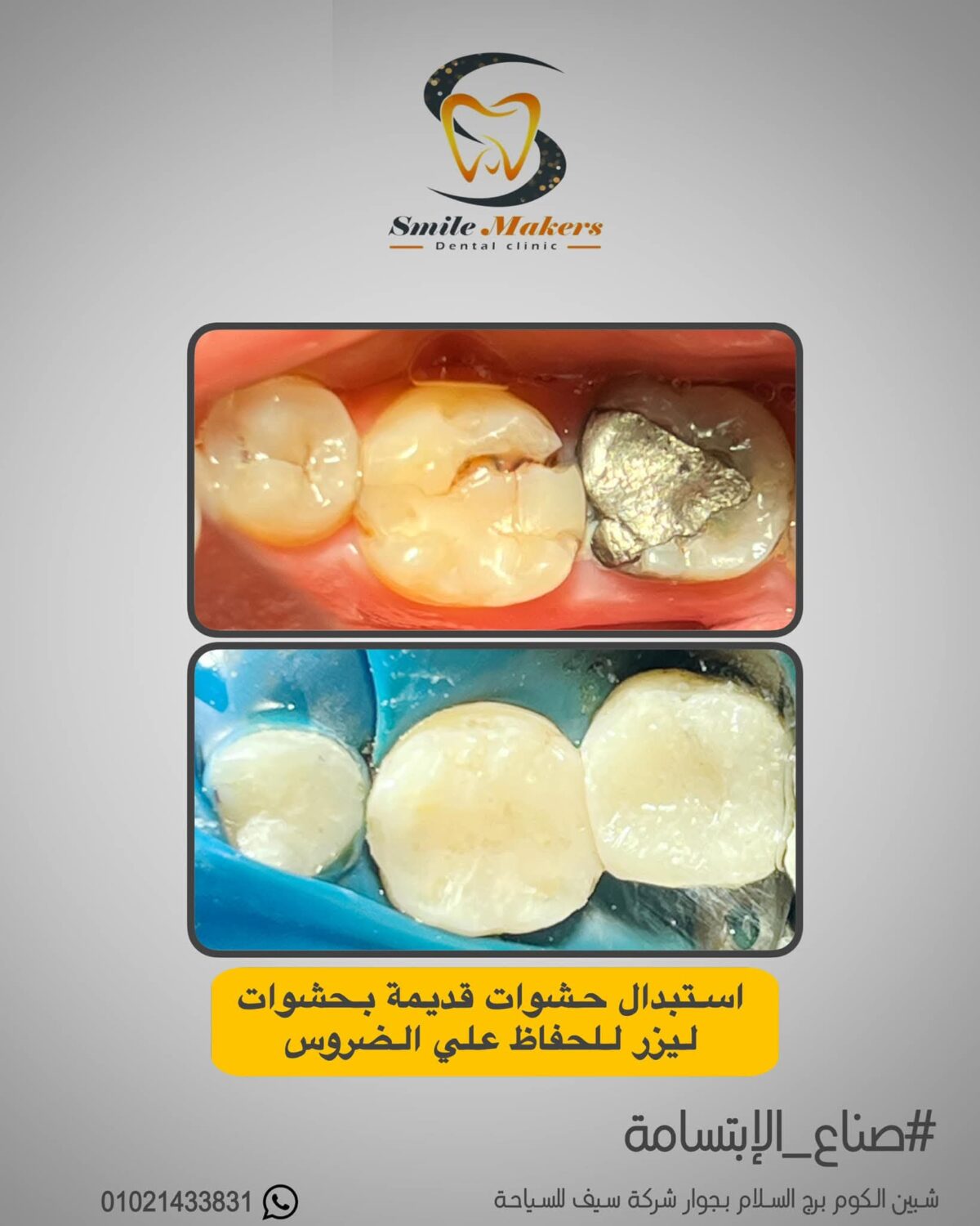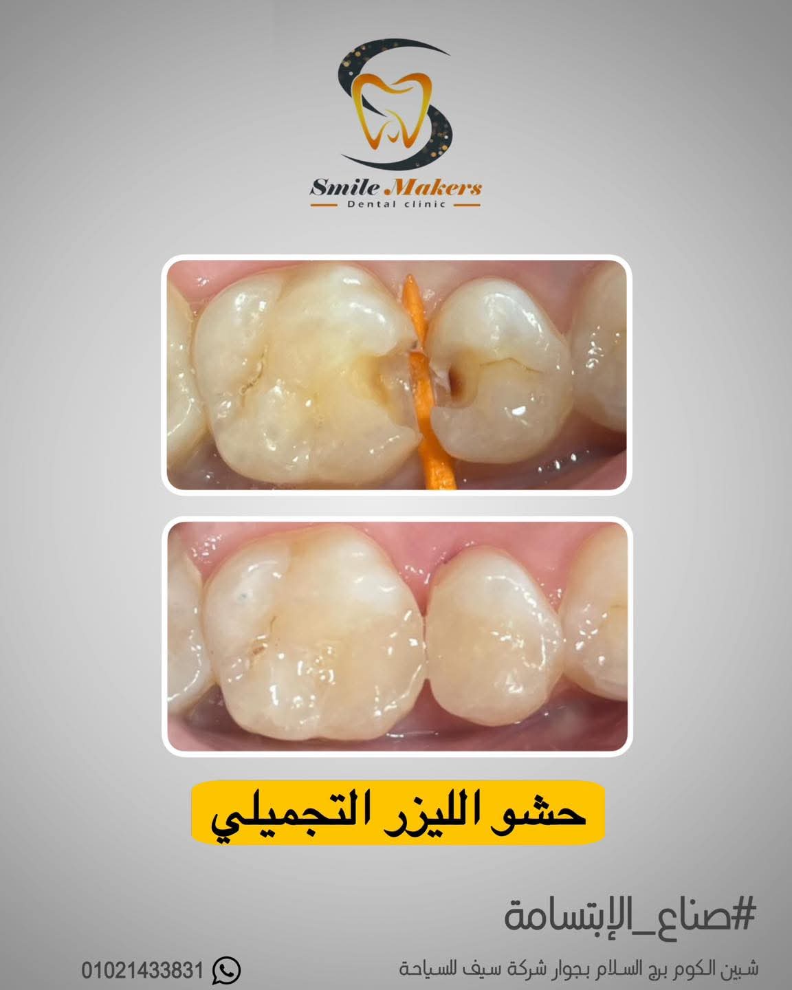 لو فيه مشاكل بسيطة زي تسوس أو كسر في الأسنان، العيادة بتوفر حشو تجميلي بنفس لون السن الطبيعي، وده بيخلي الشكل النهائي متناسق جدًا. كمان فيه خدمات متقدمة زي تركيب الفينير أو اللومينير اللي بيغير شكل الابتسامة بالكامل وبيخلي الأسنان بيضاء ومتناسقة بطريقة طبيعية جدًا، وده بيكون مناسب لأي حد عايز يجهز نفسه قبل الفرح ويبدأ حياة جديدة بابتسامة مثالية.