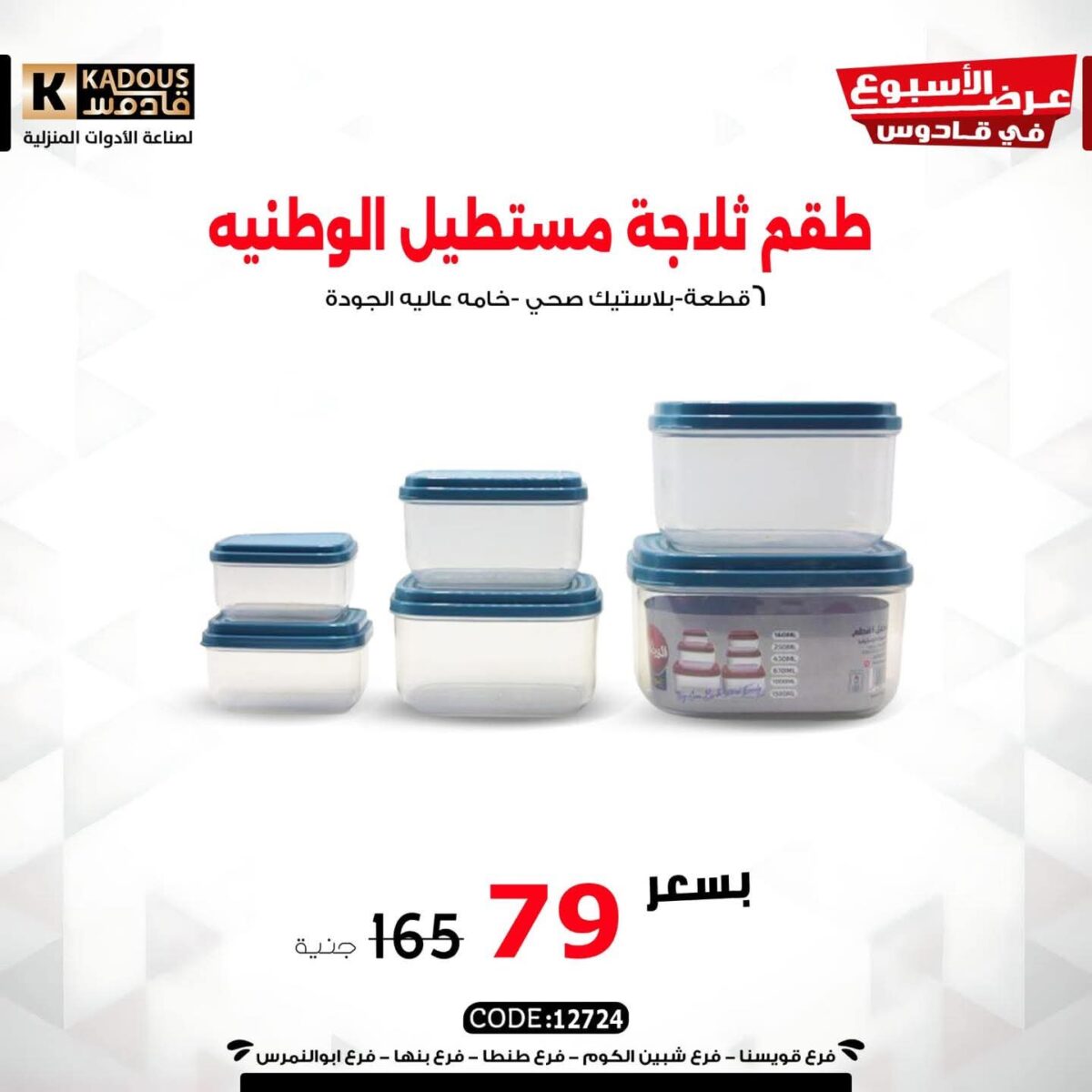كمان قادوس بيوفّر أدوات تنظيم للمطبخ زي علب حفظ طعام محكمة الغلق، برطمانات توابل شفافة، منظمات أدراج، وسلال متعددة الاستخدام بخامات متينة وألوان هادية تضيف لمسة ترتيب لأي مكان في البيت.
