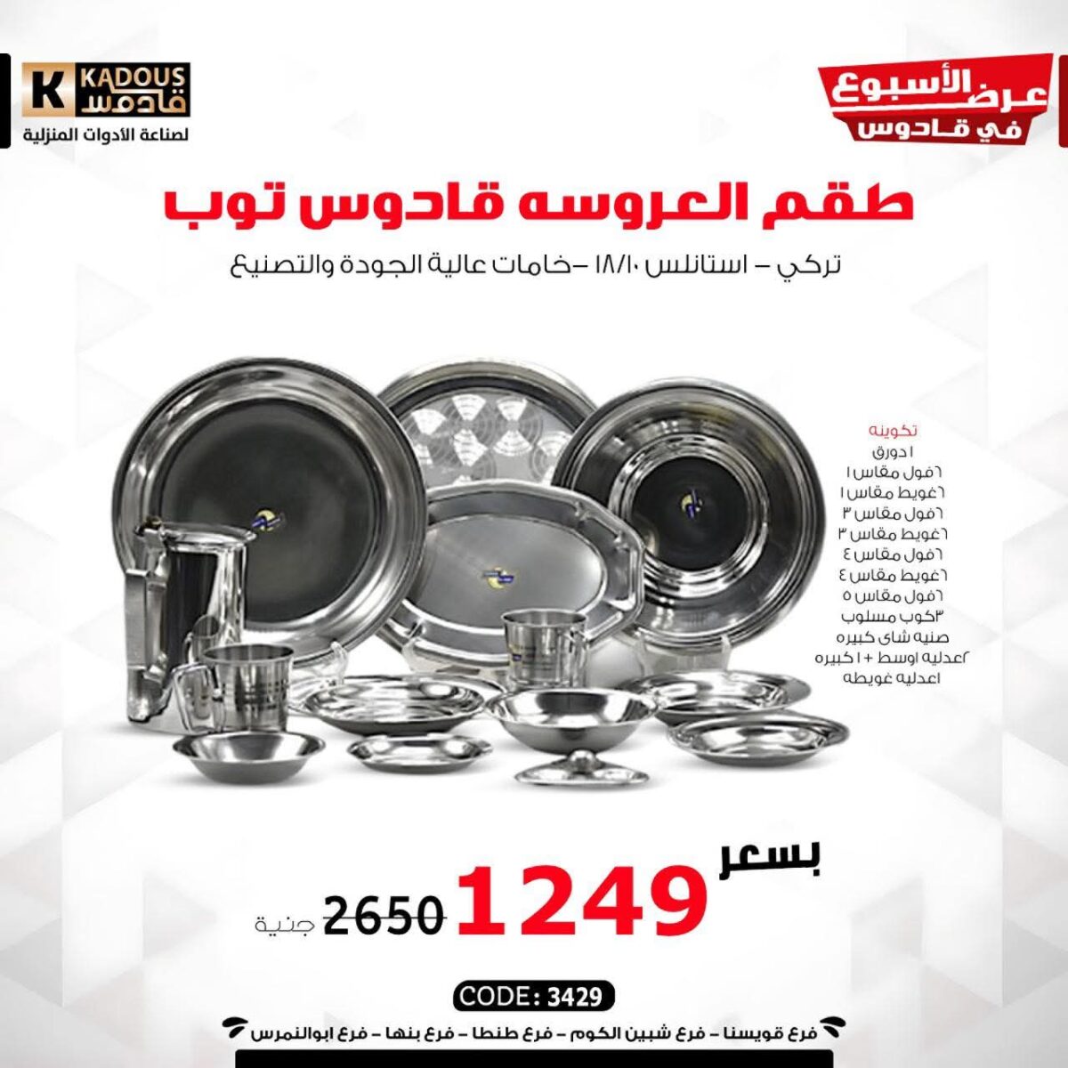 اللي بيميز قادوس للأدوات المنزلية إنه بيجمع بين جودة الخامات، التنوع الكبير، والسعر المناسب، فهتلاقي كل اللي محتاجاه في مكان واحد سواء للعرايس أو للأسر اللي بتحب تخلّي بيتها دايمًا متجدد.