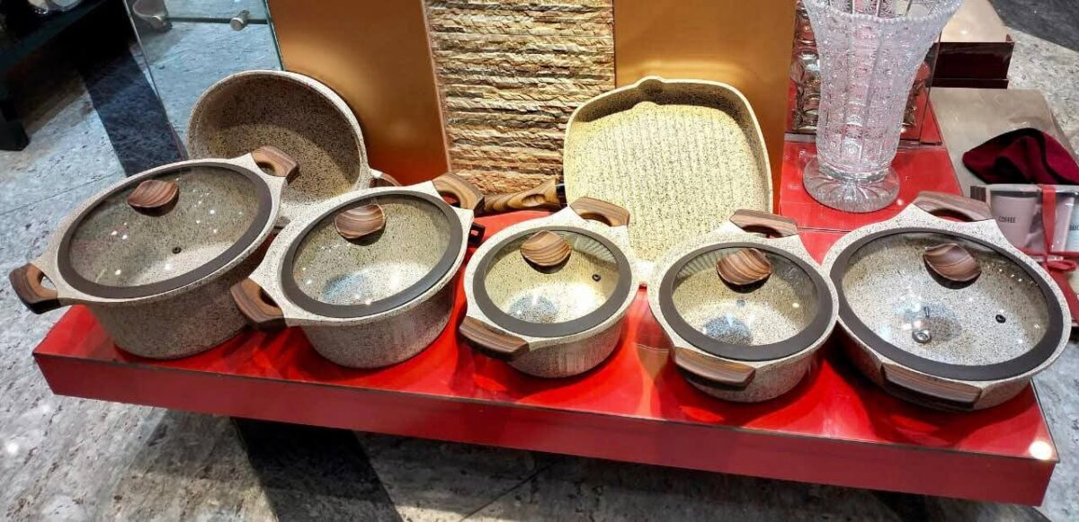 في قسم الطهي، معرض أحمد سيف بيقدّم قدور ومقالي ستانلس ستيل مقاوم للصدأ بخامات ممتازة وأحجام مختلفة تناسب كل الاستخدامات، وكمان مقالي غير لاصقة بجودة عالية بتوزّع الحرارة كويس وبتسهل الطبخ والتنضيف. كمان فيه صواني فرن، قوالب سيليكون للحلويات، وأواني زجاج حراري بتصميمات أنيقة تقدّمي فيها الأكل على السفرة بشكل عملي وشيك.