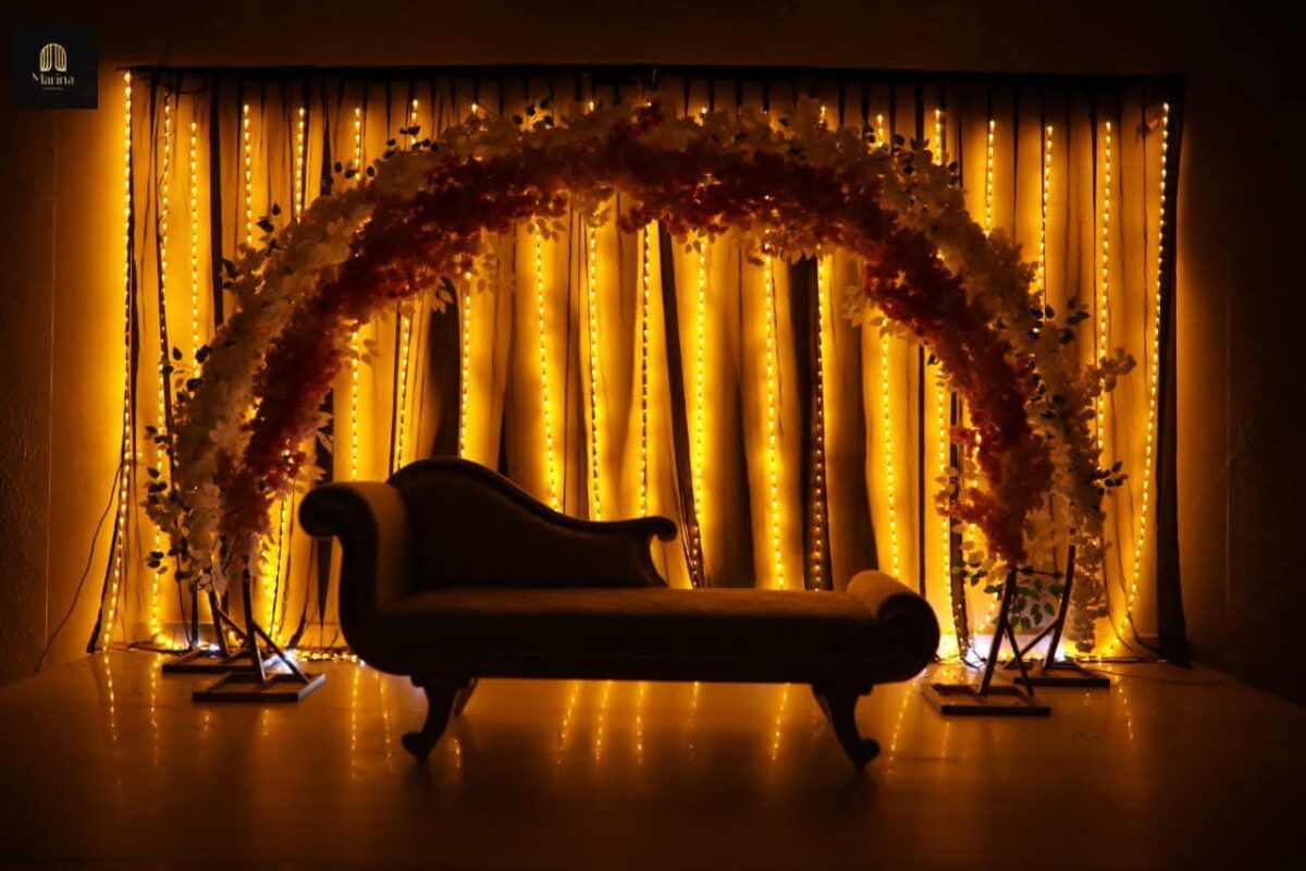 الديكور في قاعة مارينا بسيط وشيك، بألوان هادية تناسب معظم الثيمات. الكوشة بتكون جاهزة وبتقدر تضيف لمستك فيها بسهولة، سواء ورود أو إضاءة بسيطة أو زينة حسب ذوقك.