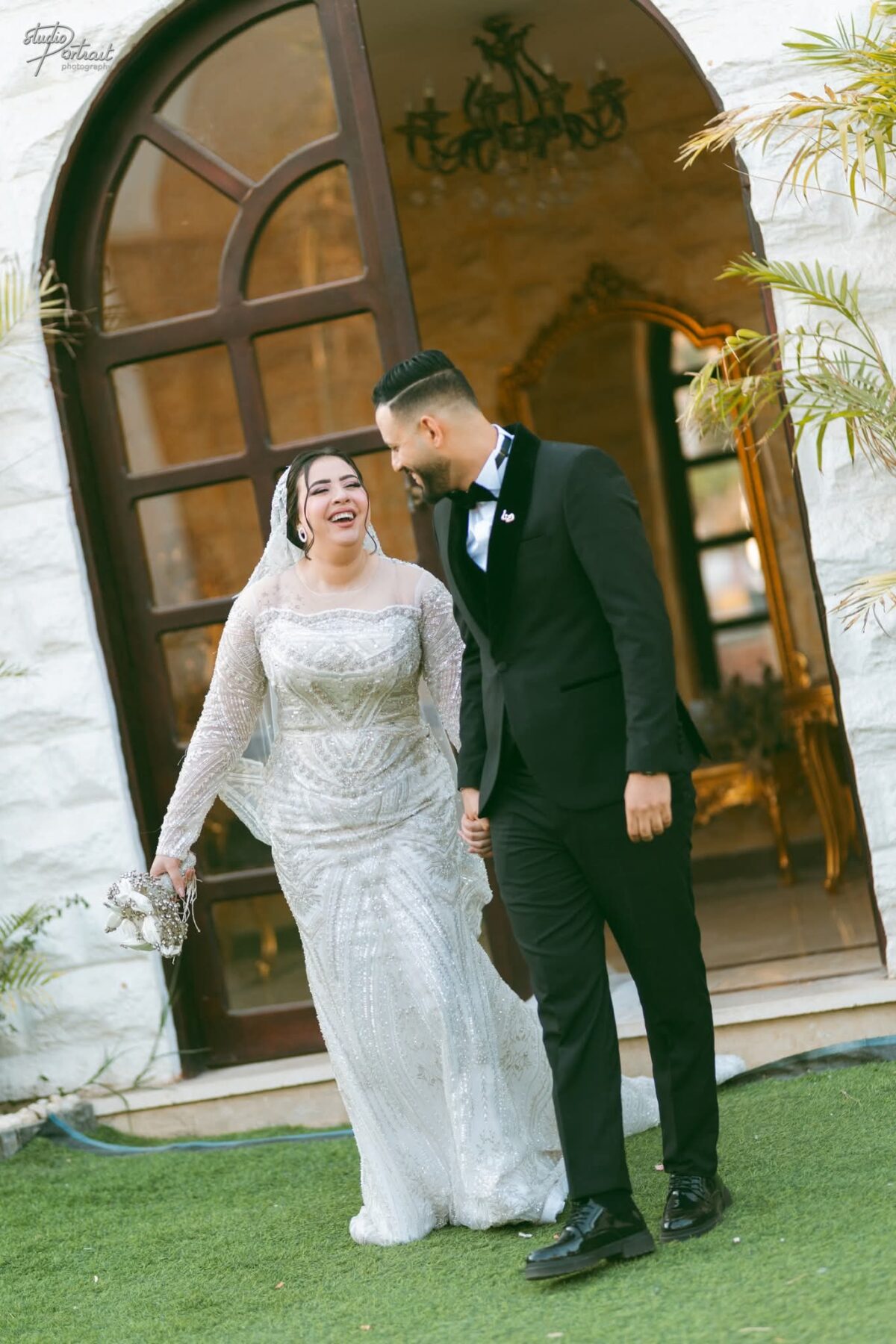 كمان في ناس كتير بتختار تعمل جزء من سيشن الفرح نفسه داخل الاستوديو، خصوصًا لو عايزين صور كلاسيك تفضل عايشة لفترة طويلة. الصور دي بتكون مناسبة جدًا للألبومات لأنها بتبقى واضحة ومتركزة على العريس والعروسة من غير أي عناصر مشتتة حواليهم.