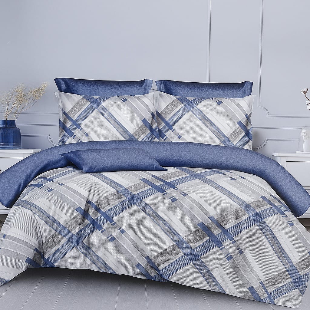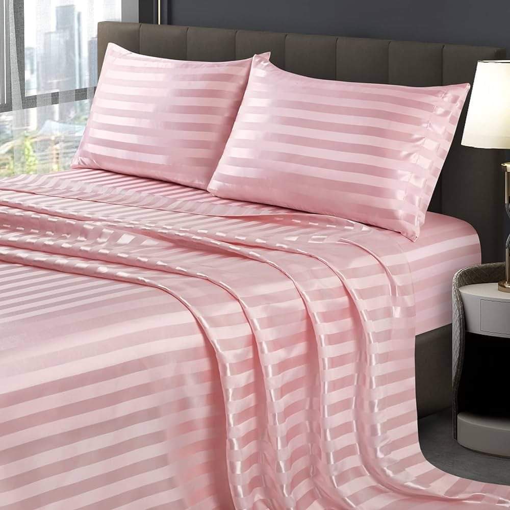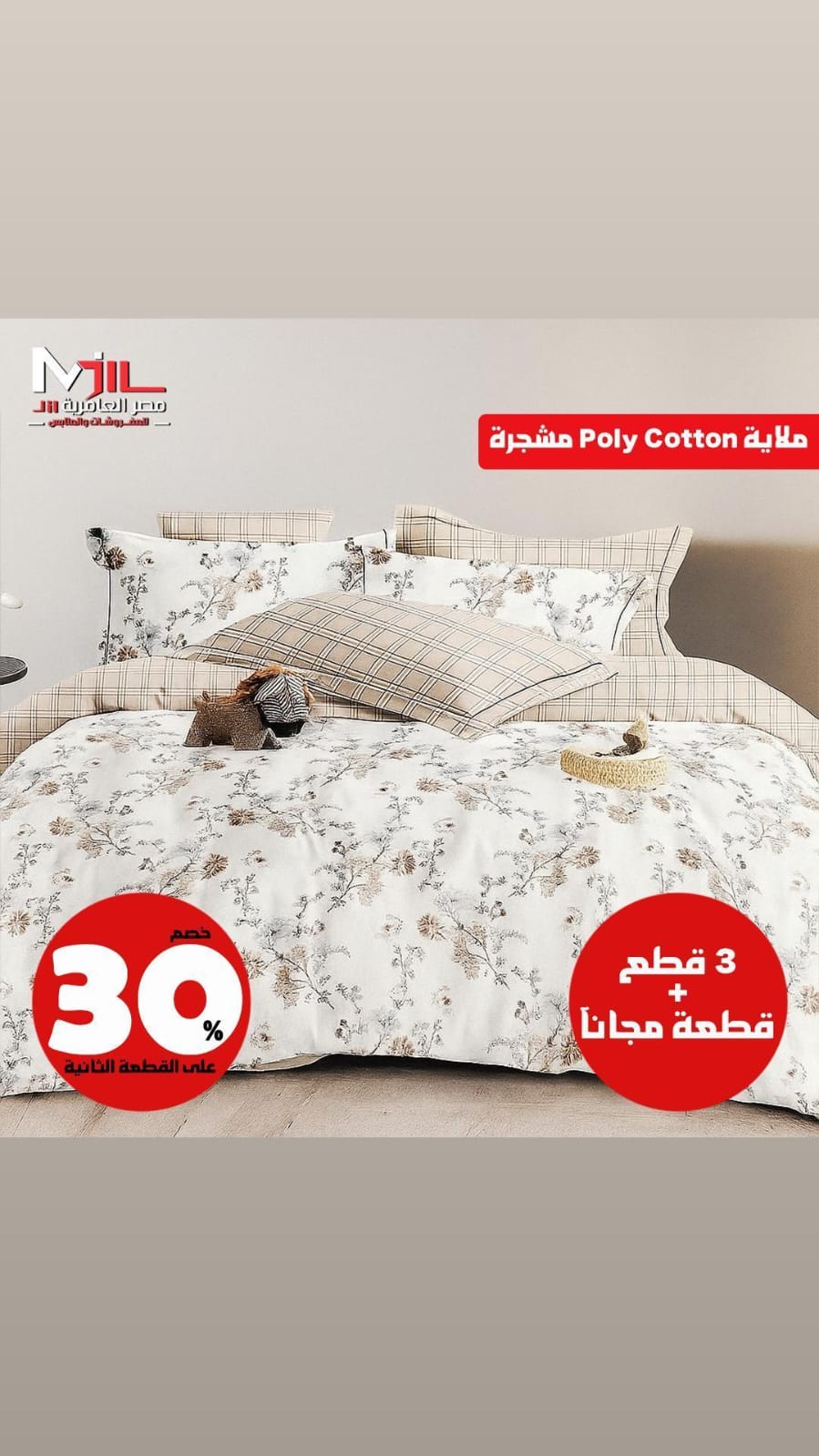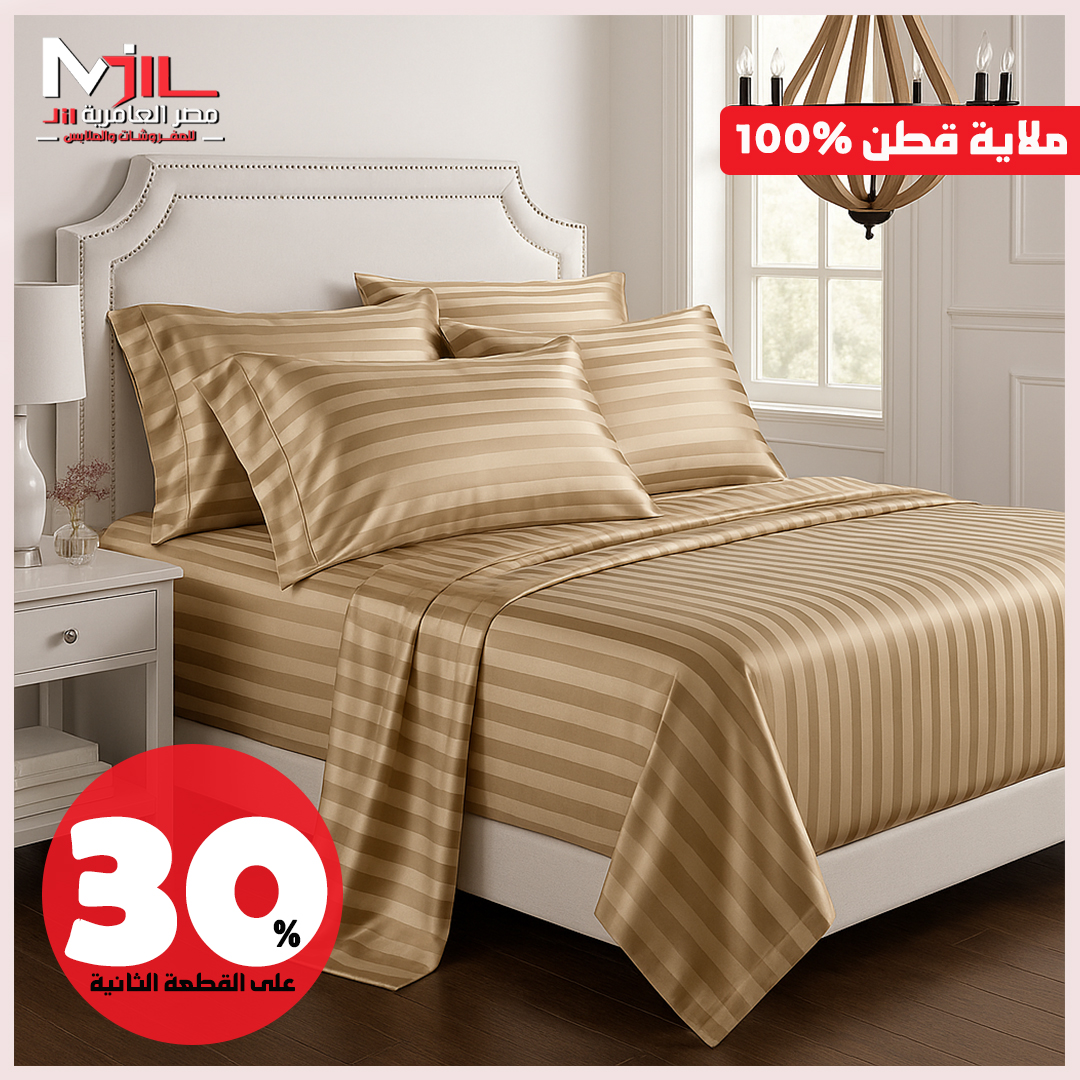 في مصر العامرية للمفروشات هتلاقي أطقم ملايات من قطن مصري 100% بعدد خيوط يضمن النعومة والمتانة. الأطقم متوفرة بمقاسات متعددة من المفرد للمزدوج وحتى الكينج سايز، ومعاها خداديّات وغطاء لحاف بنفس التصميم والألوان.